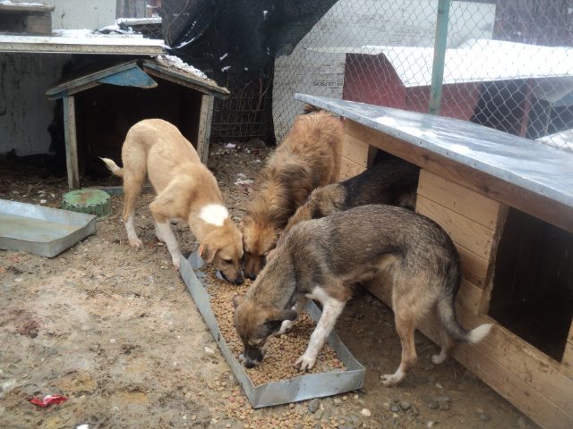 Dank Ihrer Spenden kann 5 Tage Trockenfutter für alle Hunde gefüttert werden. Die restlichen Tage sind die Hunde gezwungen den gekochten Brei aus Abfällen und Müll zu fressen, denn die Arbeiter machen sich nicht mal die Mühe Plastik und Gummi zu entfernen. Immer wieder sterben Hunde wegen Darmverschluss.Leider reicht das Futter immer nur 5 Tage bei 700 Hunden und wir benötigten dringend Daueraufträge für Futter um größere Mengen bestellen zu können.