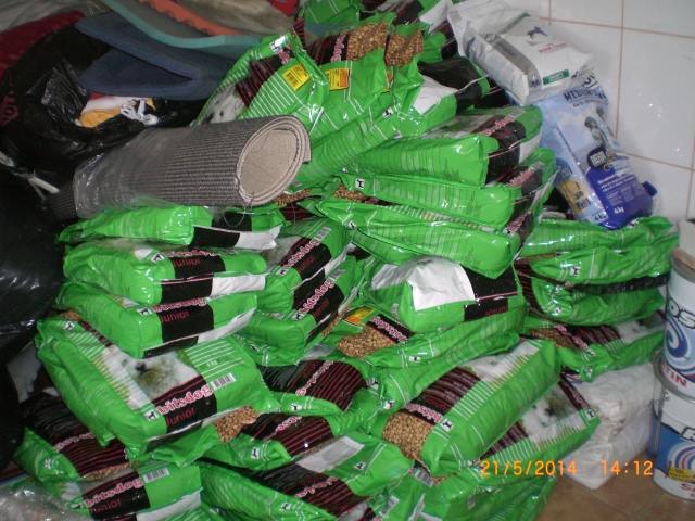 Hier seht Ihr die großen Berge an Futter und allerhand Nützlichem, die die Schweizer gesammelt und geschickt haben.