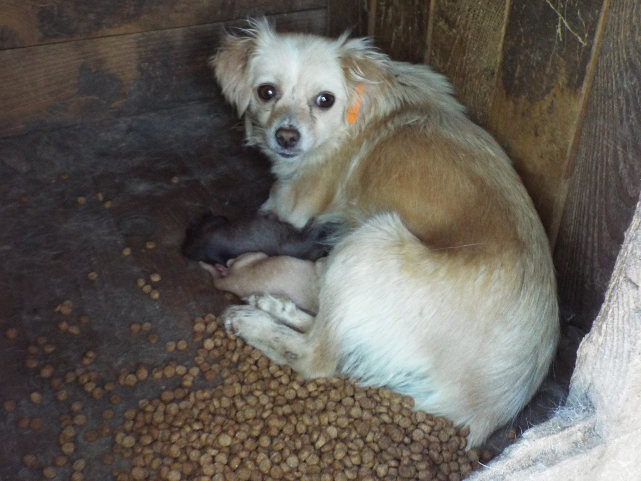 Auch sie musste ihre Welpen unter Schmerzen in einem der vielen überfüllten Zwinger voller Kot und Matsch, unter Lärm, Stress und Gestank zur Welt bringen.
