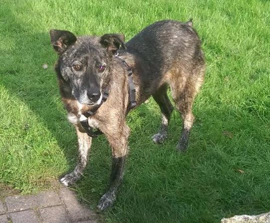 Tambourine ist ein wirklich freundlicher Hund!! Er hat einige Zeit als Straßenhund gelebt und traf dort ja seine eigenen Entscheidungen. Das merkt man ihm auch manchmal an. Er ist gelehrig, hat aber auch seinen eigenen Kopf. Er lebt aktuell mit einer Hündin zusammen. Die beiden verstehen sich gut, aber Tambourine braucht sie nicht wirklich. Das Laufen an der Leine ist kein Problem. Auch Schleppleine funktioniert sehr gut. Angst vor Menschen hat er gar nicht. Tambourine lässt sich auch sehr gerne kraulen. Auch spielen kann man draußen auf der Wiese mit ihm, allerdings noch ohne Stöckchen oder Ball. Er ist sowieso am liebsten den ganzen Tag draussen weil es dort so unglaublich spannend ist. Wenn er dann aber drinnen ist, ist er ruhig und geht in sein Körbchen. Mittlerweile reagiert er auch auf den Namen Tambourine. Grundbegriffe wie Sitz, und Komm beherrscht der schlaue Junge ebenfalls. Tambourine liebt es wenn man ihn bürstet. Der ältere Herr sucht ein Plätzchen, wo er Ruhe und Entspannung findet, die er in seinem alten Leben auf der Straße oder im Tierheim nicht finden konnte.