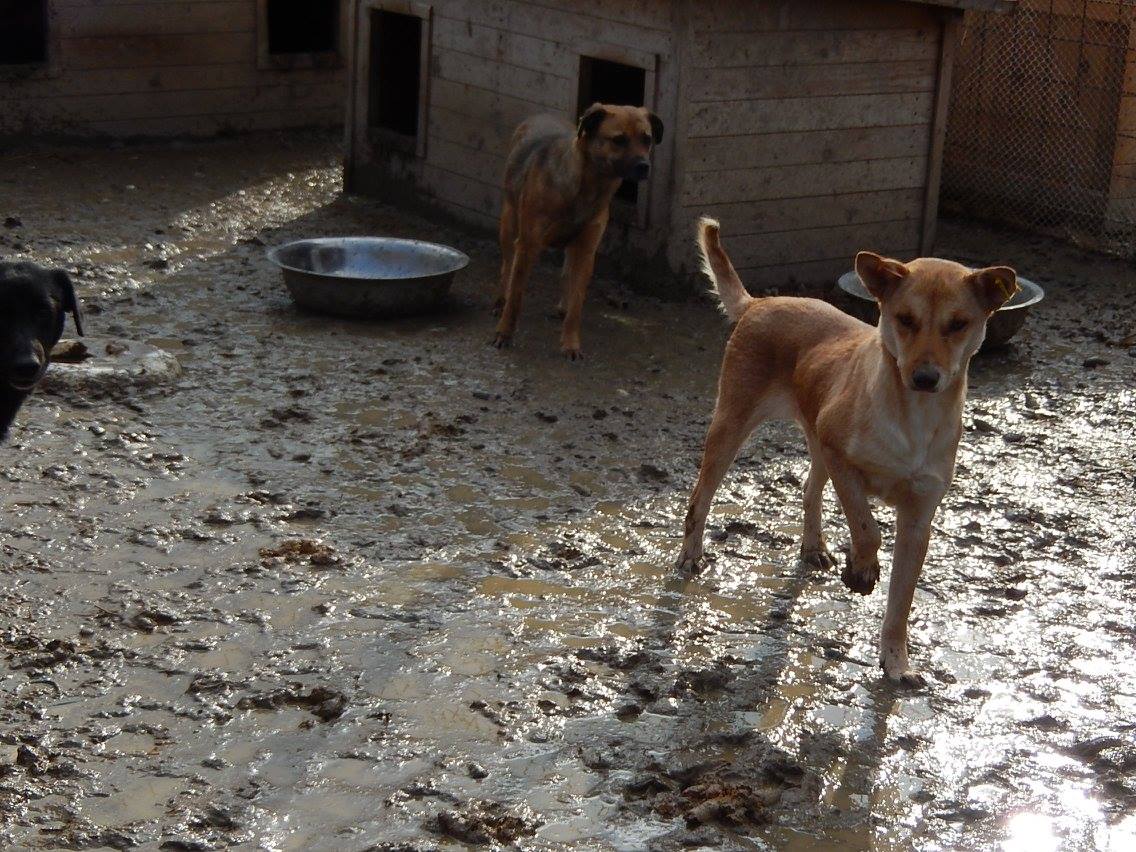 Die Hunde stehen permanent im Schlamm aus durch Regen und Schnee aufgeweichten Erdboden und Fäkalien.