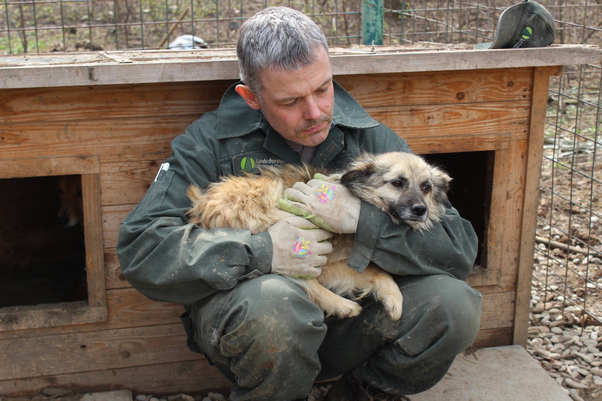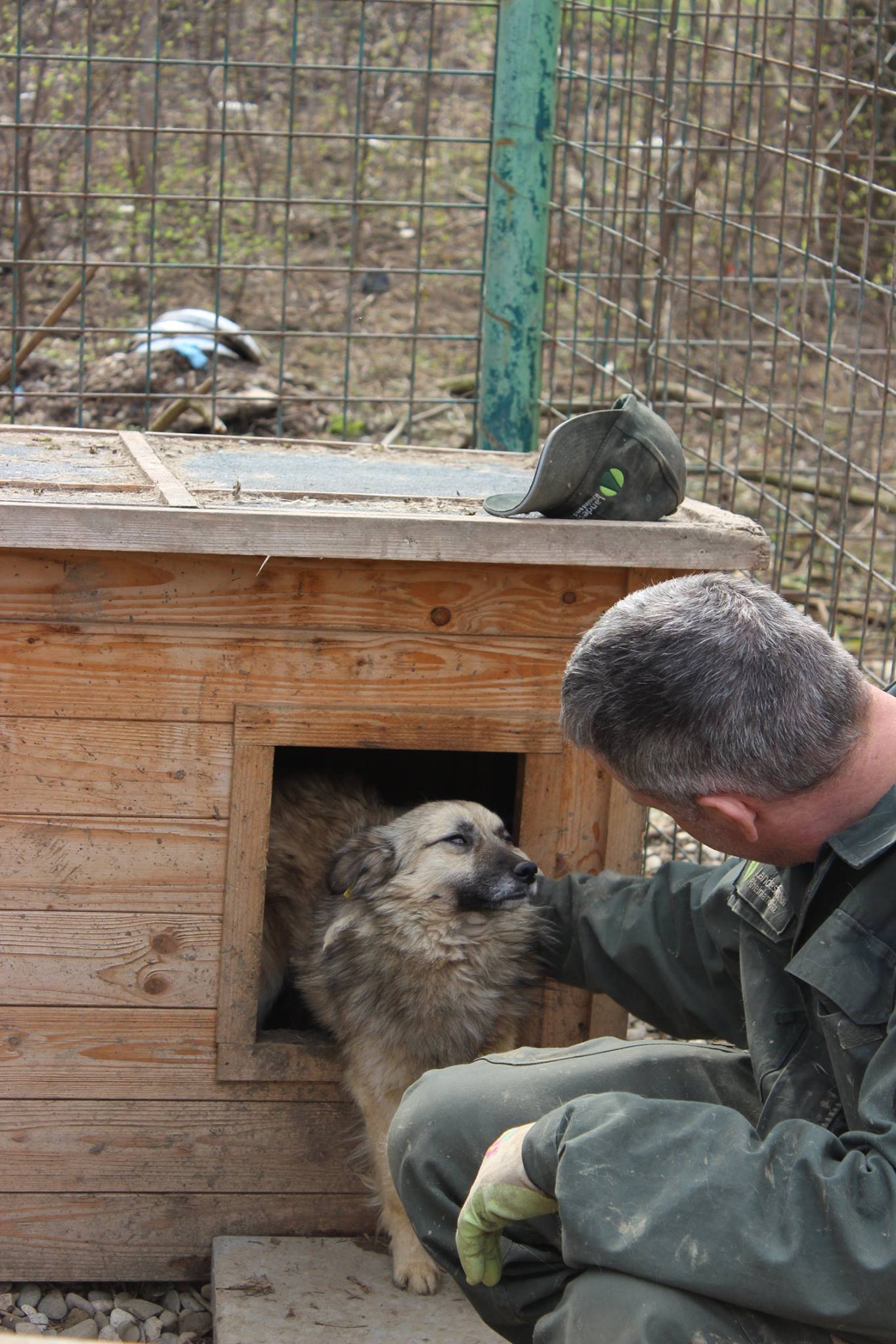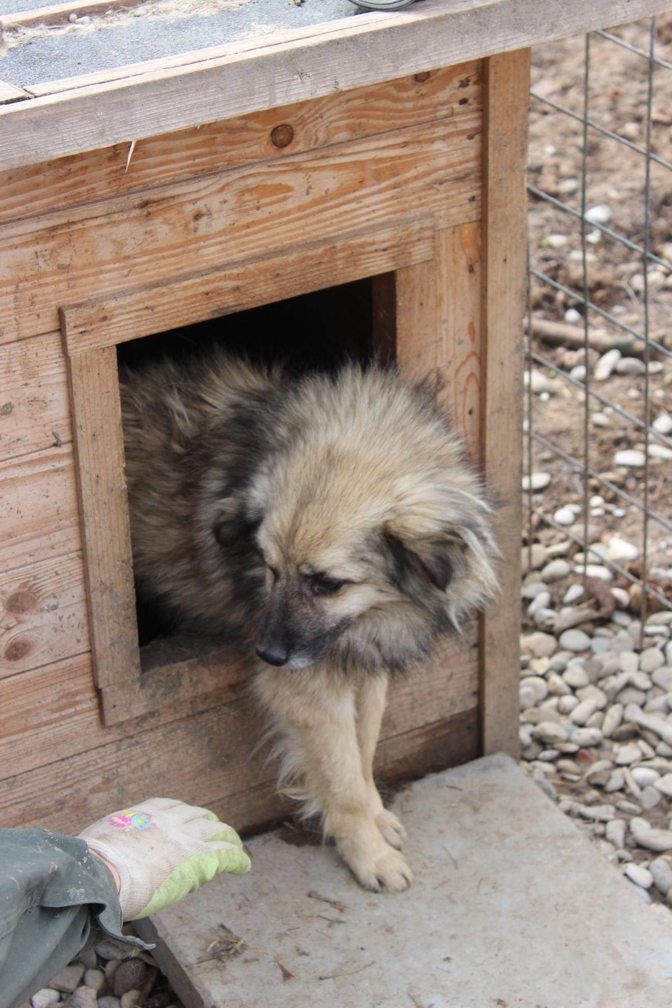 Wenn man in die Gehege der Hunde eintritt, gibt es mehrere Kategorien von Hunden. Es gibt die, die sofort auf einen zu kommen, einen aber direkt auch gegenüber anderen Hunden abschirmen, es gibt die, die sich in die Ecken verdrücken und sich am liebsten in Luft auflösen würden, und es gibt die, die erst mal in der Hütte sitzen und abwarten.