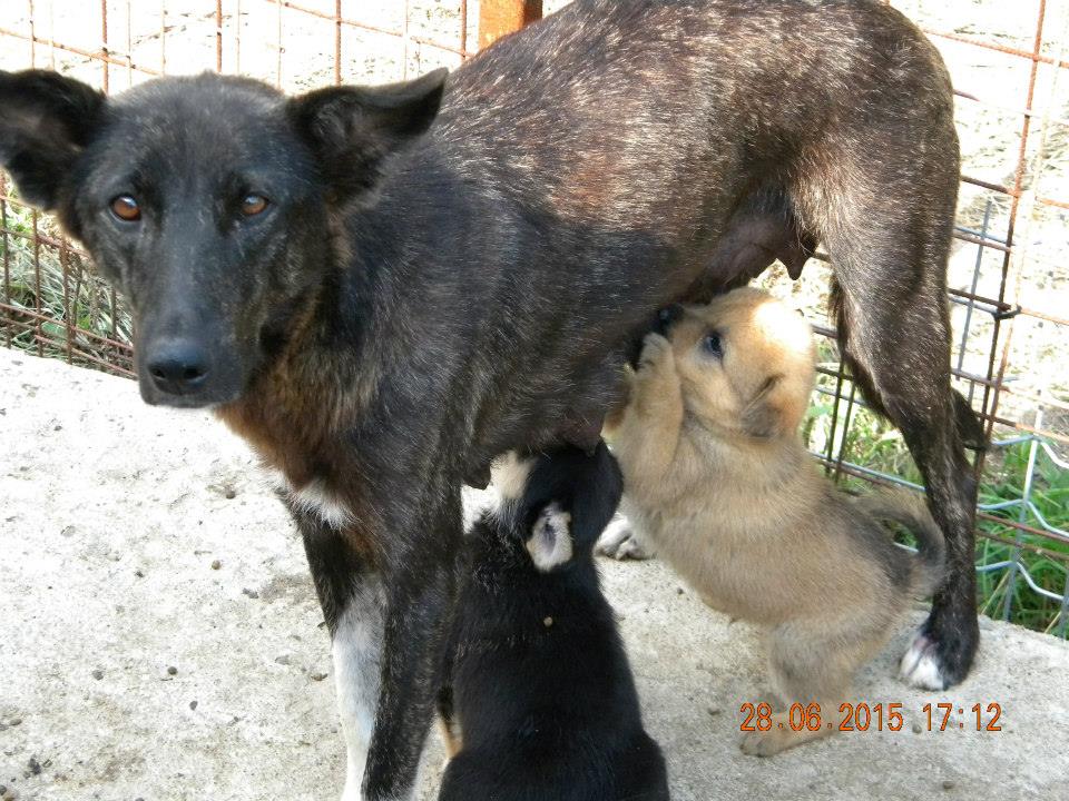 Diese ganz freundliche Hündin hatte leider noch nicht das Glück. Mishu hat sie erst heute aufgesammelt mit ihren 5 Welpen. Sie sind erst ca. 1 Monat alt, jetzt zwar in Sicherheit, aber dennoch sind sie noch nicht über den Berg.