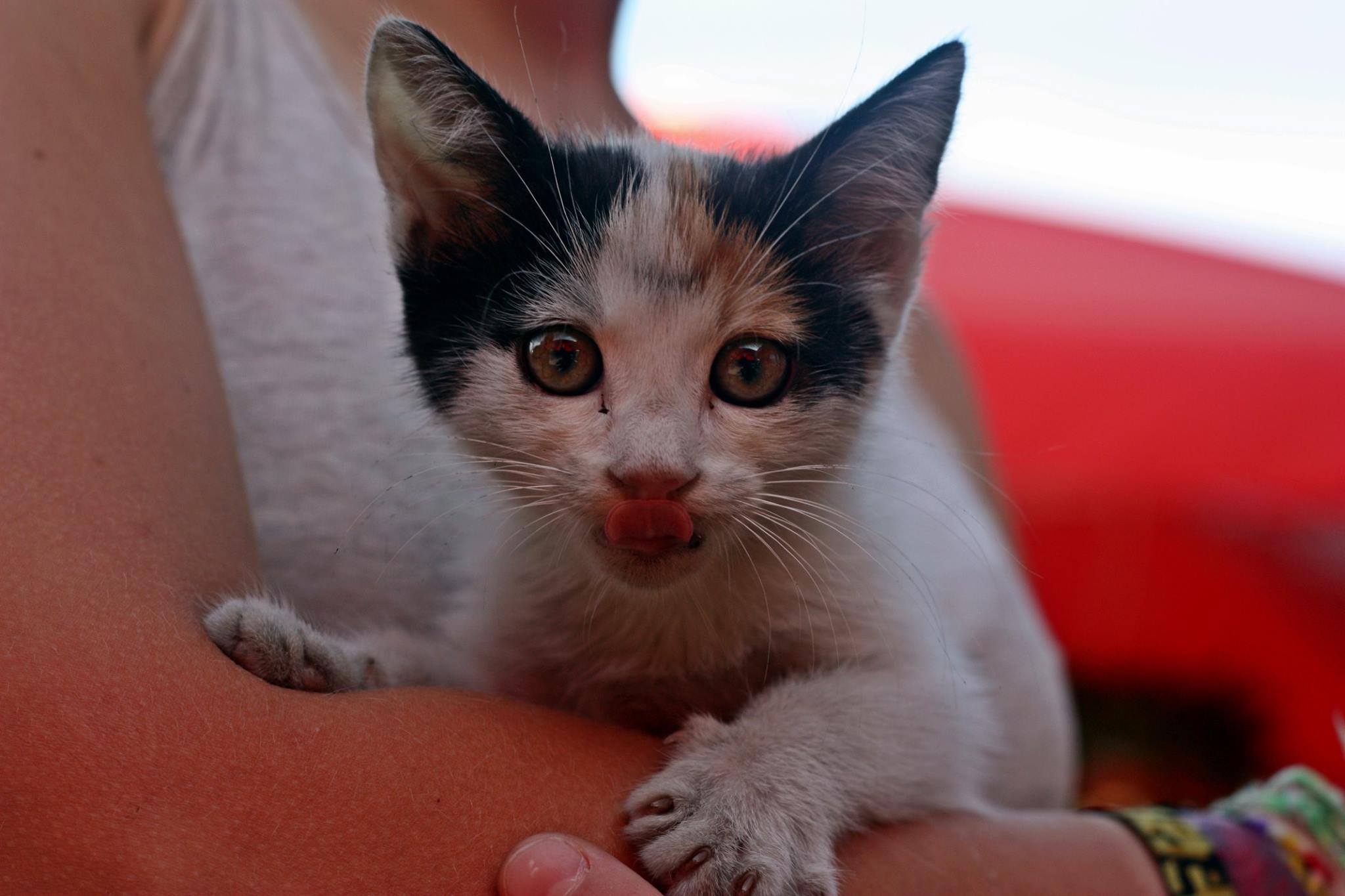 Als wir vor unserer Pension auf Aniela warteten, hörten wir lautes miauen das aus der Karosserie eines stehenden Autos kam. Wir versuchten zu orten, wo sich die Katze befand, jedoch kam schon kurze Zeit später ein kleines ca. 4-5 Wochen altes Kätzchen zum Vorschein, was wir in unsere Obhut nahmen. Sie war dehydriert und sehr glücklich, als wir sie mit Wasser und Essen versorgten. Aniela brachte sie zur Beobachtung zu einem Tierarzt und wird in ein paar Tagen dafür sorgen, dass sie ein sicheres Plätzchen zum Leben bekommt.