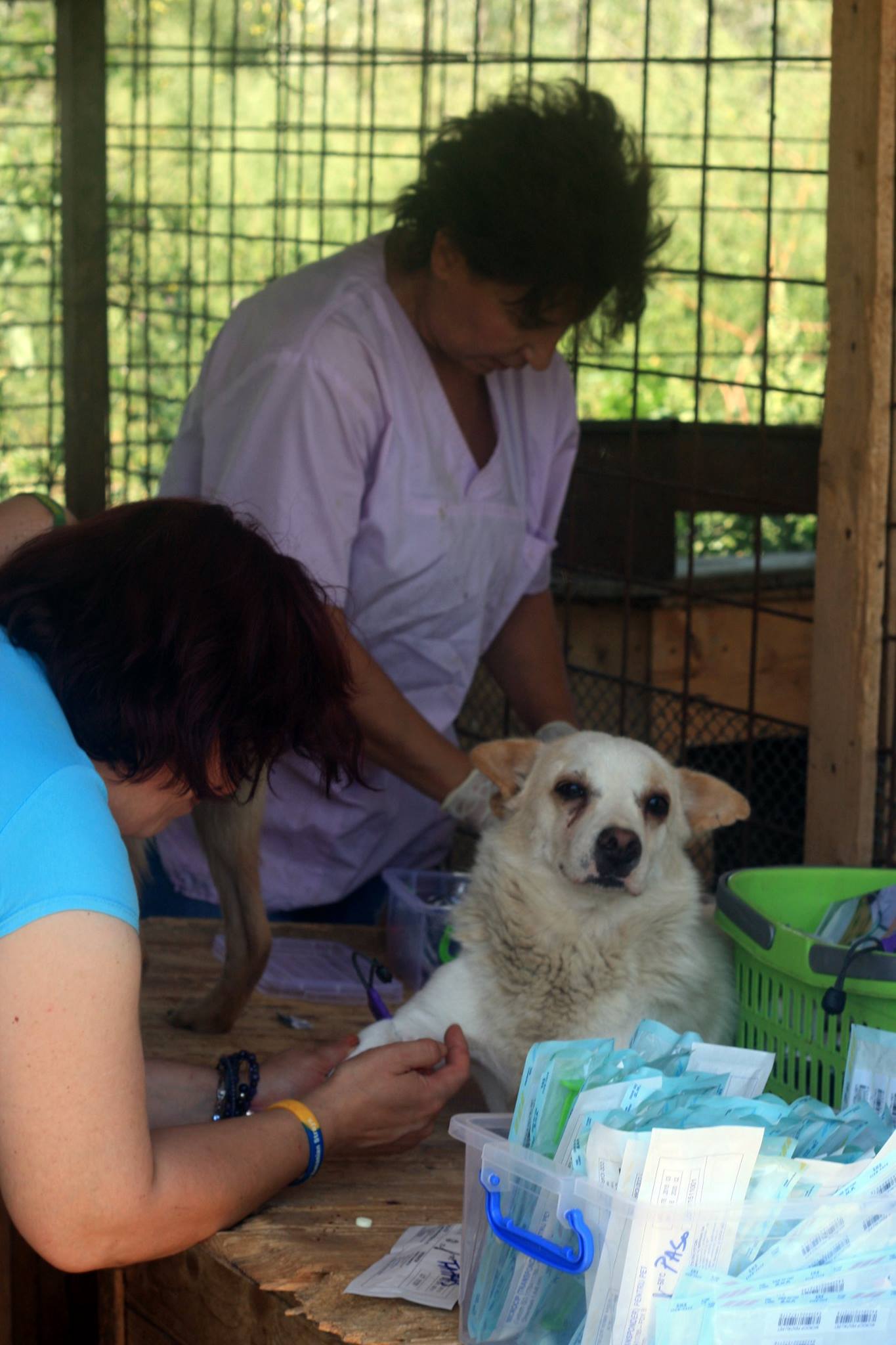 Im Tierheim angekommen fingen wir mit der Vorbereitung der Hunde für die Transporte an. Wir überprüften ob die Hunde gesund und fit sind und halfen den Tierärzten die Tiere zu halten, während diese ihnen Blut abnahmen. Das wird uns die nächsten Tage weiterhin beschäftigen.