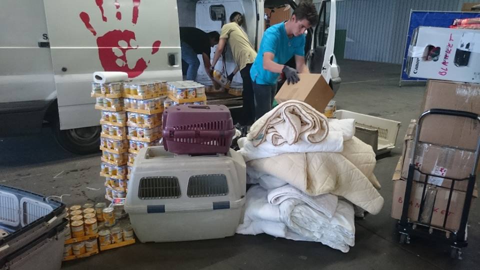An Bord waren u.a. Futter für Hunde und Katzen, Decken, Hygieneunterlagen, Kühlschrank, Trocker uvm.