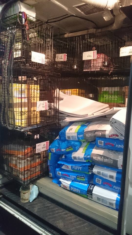 Trockenfutter und Nassfutter für die vielen Welpen, Welpenmilch, Haferflocken, Vitamine, Lachsöl, neue Wasserkübel und Abdeckplanen für die weiteren Zwinger, Medikamente und Zubehör für die Tierärzte, Einmalhandschuhe, Spritzen, Kanülen, Desinfektion, Hygieneunterlagen, Decken uvm.