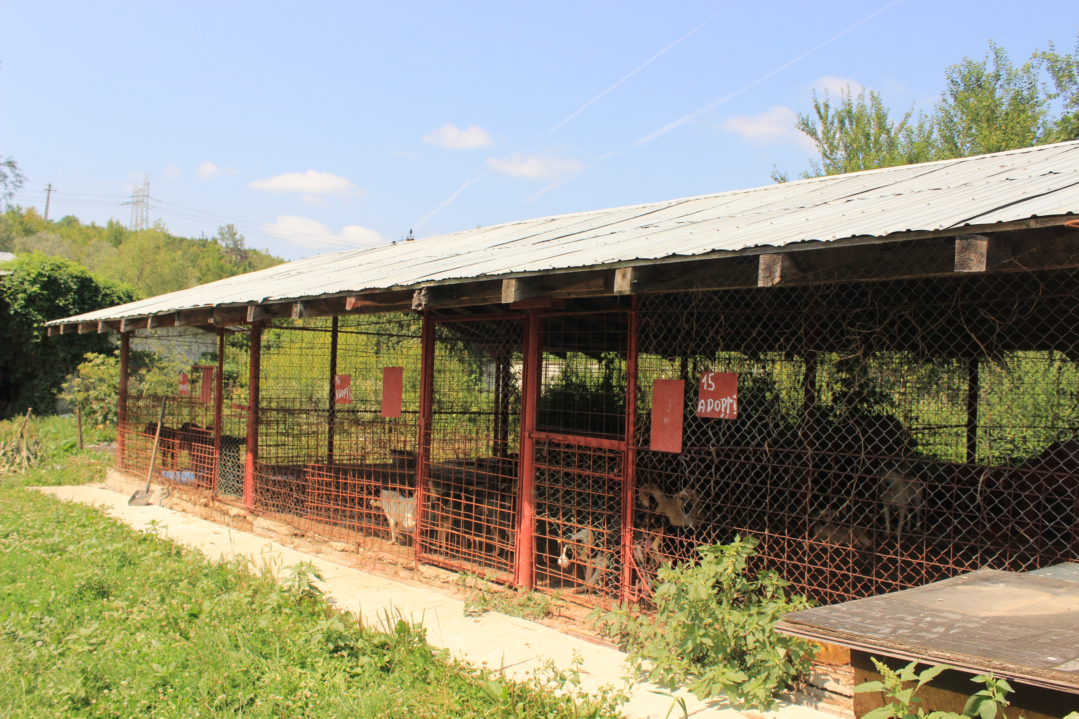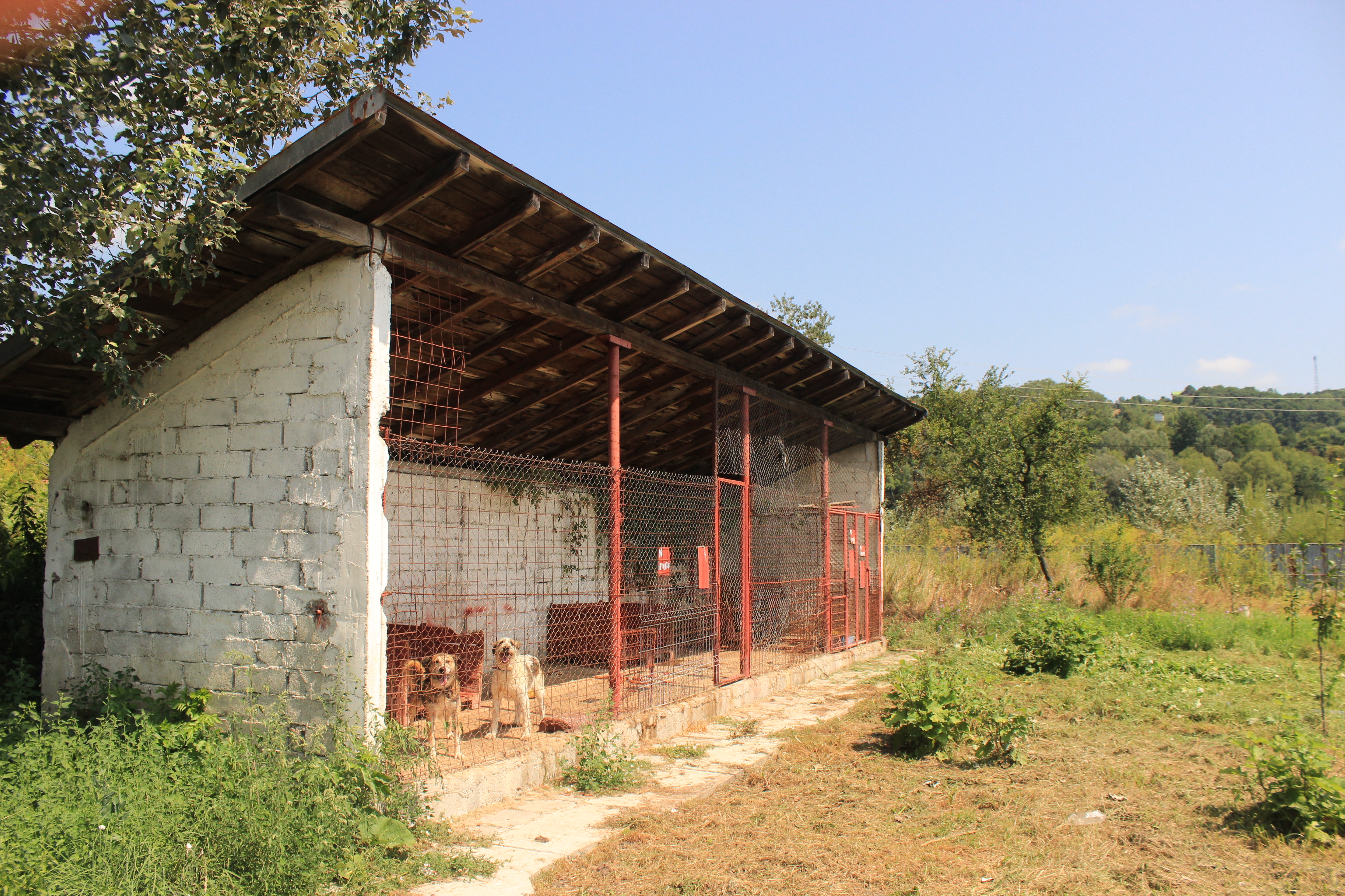 Dort angekommen machten wir erst mal einen Rundgang. Das Gelände ist nicht sehr groß, das Eingangstor ist blickdicht, sehr groß, oben säumt Stacheldraht. Wir haben 4 Kennelkomplexe, Teile davon sind aus sehr gutem Material gebaut, andere sind nur behelfsmäßig mit Maschendrahtzaun umspannt. Die Flächen, auf denen die Hunde leben, sind alle betoniert. Alle Zwinger haben Teilüberdachungen, manche sind ganz überdacht.