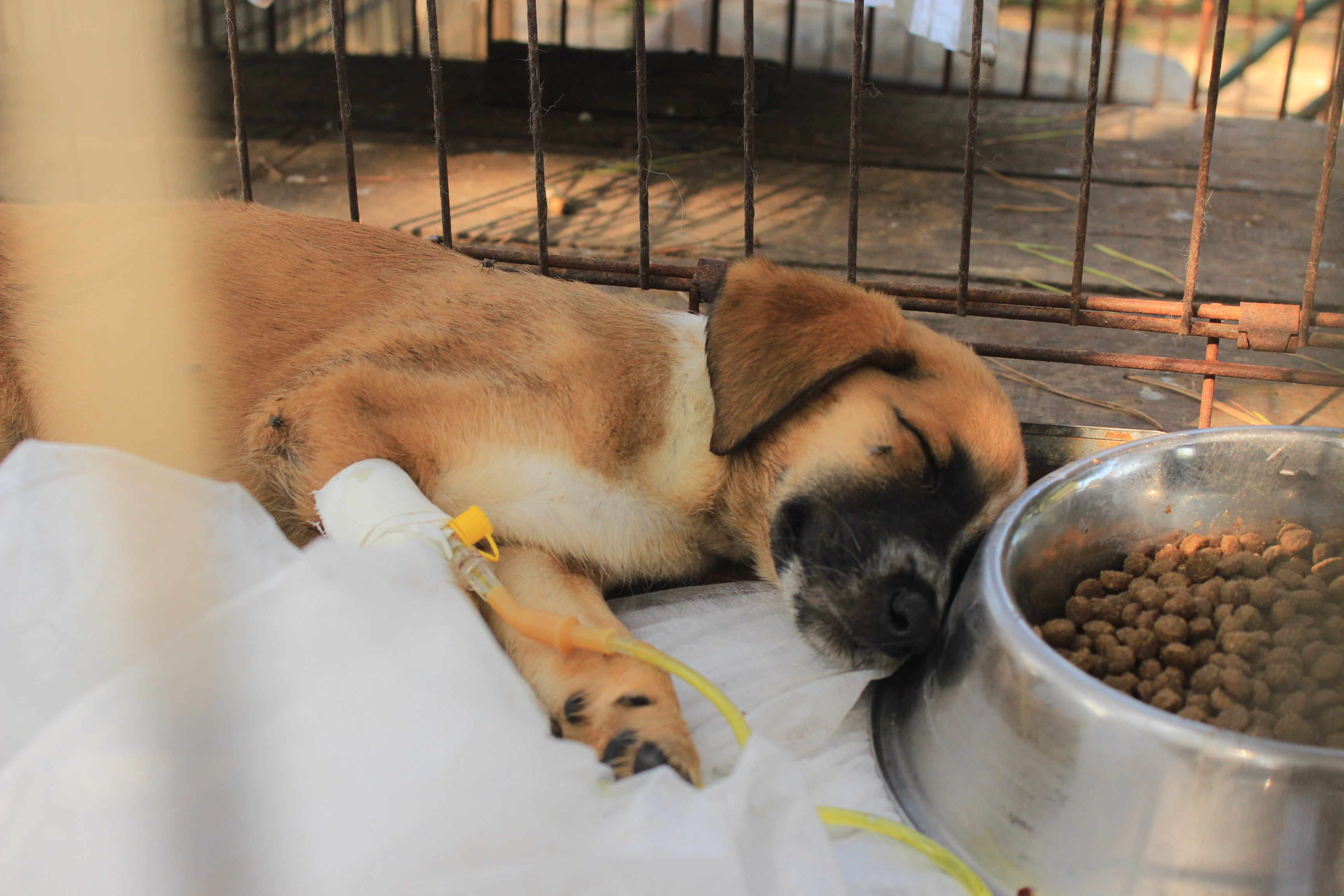 Die Hunde waren teilweise in sehr schlechten Zuständen. Teile von ihnen waren an Staupe erkrankt, andere hatten klare körperliche Handicaps. Eine kleine Hündin war nahezu kahl, konnte nicht mehr laufen. Schnell war klar, sie hatte die Hüfte völlig gebrochen, Tierärztin Catalina vermutete einen Autounfall. Wir haben auf Anhieb direkt 4 tragende Hündinnen entdeckt, bei einer Hündin fehlte eine Pfote, die Wunde schien sehr frisch. Sehr sehr kleine Hunde saßen in Zwingern mit riesigen Rottweilern, Rüden und Hündinnen waren nicht getrennt, es vermehrte sich alles munter.