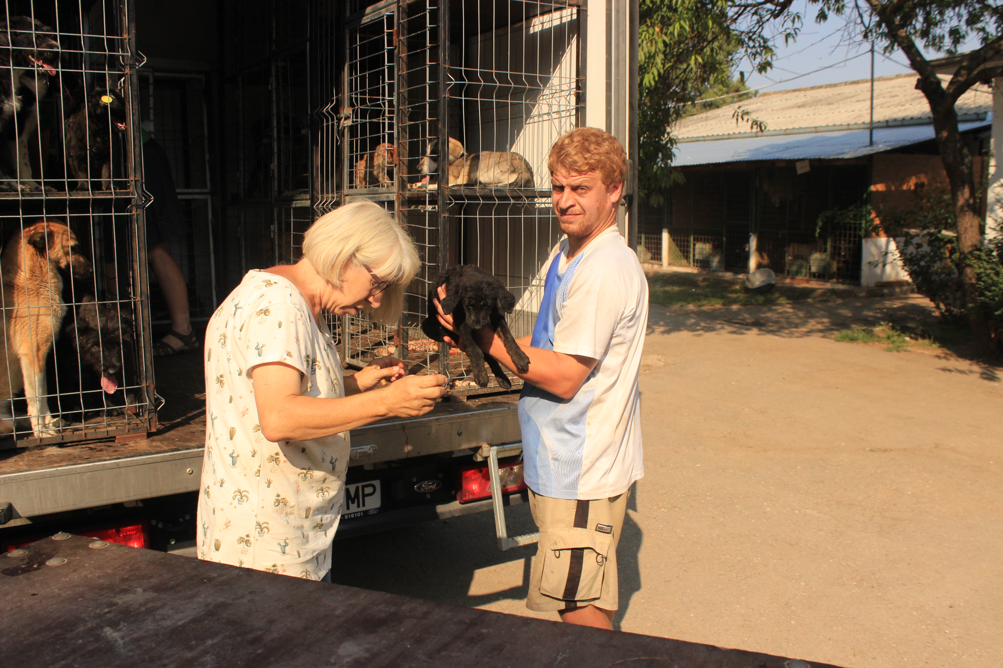In Bucov angekommen haben direkt alle vor Ort mit angepackt. Alle Hunde wurden mit Ohrmarke gelistet, entfloht ( so viele hatten Zecken und Flöhe…) und dann so aufgeteilt, wie es am besten war. Kranke Hunde in die Vetcontainer, zwei schlimme Notfälle hat MIhaela direkt in die Klinik gebracht, die Saugwelpen auf eine Pflegestelle.