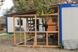 Heute morgen bin ich recht früh nach Bucov aufgebrochen. Es war sehr kühl, 4°C und alles war noch total feucht und klamm. Wie gewohnt wurde ich im Hof des Hundelagers direkt von zahlreichen freilaufenden Hunden begrüßt, einige Gesichter waren mir noch von meiner August Reise vertraut. Als ich gerade das Auto ausgeladen hatte, entdeckten meine Augen etwas, über das ich mich sehr freute. Hinter dem Container steht ein Holzgerüst, das nun nach und nach Arbeitsort für unsere Tierärzte werden soll. Im Sommer hatten wir noch mit dem Direktor Sandu gesprochen, der uns zusicherte, dass er die Erlaubnis für den Bau bewilligen wird. Auch Mihaela ist heilfroh darüber, dass es nun endlich los geht. Wir besprechen nun, wie wir auch hier helfen können.