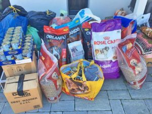 Aniela und Mihaela dürfen sich über Futter für Hunde und Katzen, Decken, Bettwäsche, Transportboxen uvm freuen.