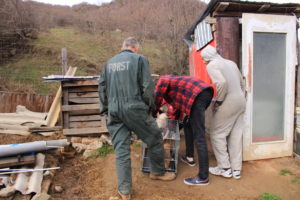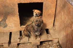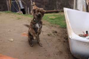 Gestern Abend informierte mich Mishu, dass er eine Anfrage erhalten hatte von einer Familie aus Mehadia, die mehrere Hunde ins Tierheim geben wollte. Es sollte sich dabei um Welpen und zwei Kettenhunde handeln. Sie könnten sich nicht mehr um die Hunde kümmern. Wir fuhren also heute morgen mit Andrei, Mishus Sohn nach Mehadia, und waren ein wenig gespannt, was uns dort erwarten würde. Wir konnten mit dem Auto nicht ans Grundstück fahren, es ging steil bergauf, wir mussten einiges zu Fuß zurücklegen. Die Boxen nahmen wir mit.