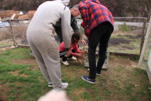 Die Leute, die die Hunde so untergebracht hatten, waren sehr freundlich zu uns und verabschiedeten sich auch von jedem Tier einzeln. Sie haben sie gefüttert und konnten zu jedem einige Sachen sagen, die Welpen sollen wohl angeblich schon eine erste Impfung erhalten haben. Man kann also nicht sagen, dass ihnen die Hunde total egal wären. Laut ihrer Aussage waren die beiden Hunde an die Kette gelegt worden, weil sie keine Welpen haben wollten und die Hündin würde, wenn sie läufig sei, ja dann streunern gehen. Als wir ihnen erklärten, dass eine Kastration doch die Lösung sein könnte, um in Zukunft keine weitere Hunde an die Kette zu legen, blockten sie schnell ab. Auch hier waren wieder einige Vorurteile im Spiel. Mishus Sohn erklärte ihnen ganz klar, dass die Hündin, die noch im Garten an der Kette lebte, kostenlos abgeholt und kastriert werden könnte. Mishu wird dort morgen auch nochmal anrufen und erneut dieses Angebot machen…