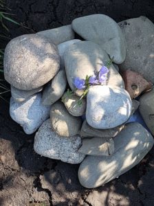 Wir nehmen das Kleine und suchen schöne Steine und ein paar Blüten…. ausnahmsweise wird dieser Hund beerdigt. Würdevoll. Diese Zeit müssen wir uns einmal nehmen.