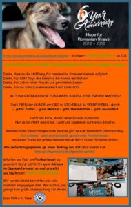 HAPPY BIRTHDAY HOPE FOR ROMANIAN STRAYS von Nadine | Aug. 31, 2018 | Home THANK YOU ANIELA ❤❤❤ Spendenlink: https://bis2024.prodogromania.de/spendenformular/?fb_item_id_fix=2181