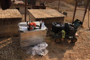 Wir teilten uns auf in Bautrupp, Erfassungsteam und Kies+ Hüttencheck Gruppe. Ebenso legten wir uns fest, dass wir uns mittags um 13 Uhr erneut alle treffen wollten, denn man verliert unfassbar viel Zeit, wenn man einzelne Leute auf dem Gelände sucht..es ist riesig, unübersichtlich, man kann nicht weit schauen und überall in den Kennels wuseln Hunde umher. Eine bunte, nervöse Masse…man erkennt nichts. Und dann ging es wieder los, abtauchen in die Kennels, Goldschätze ausgraben, Bilder machen, schöne und gute Veränderungen sehen, überrascht sein von all den Kräften, die gerade die jungen Welpen haben, sich durch dieses harte Pflaster durchzukämpfen. Sooo viele tolle Hunde waren es heute erst alleine an Tag 1…..
