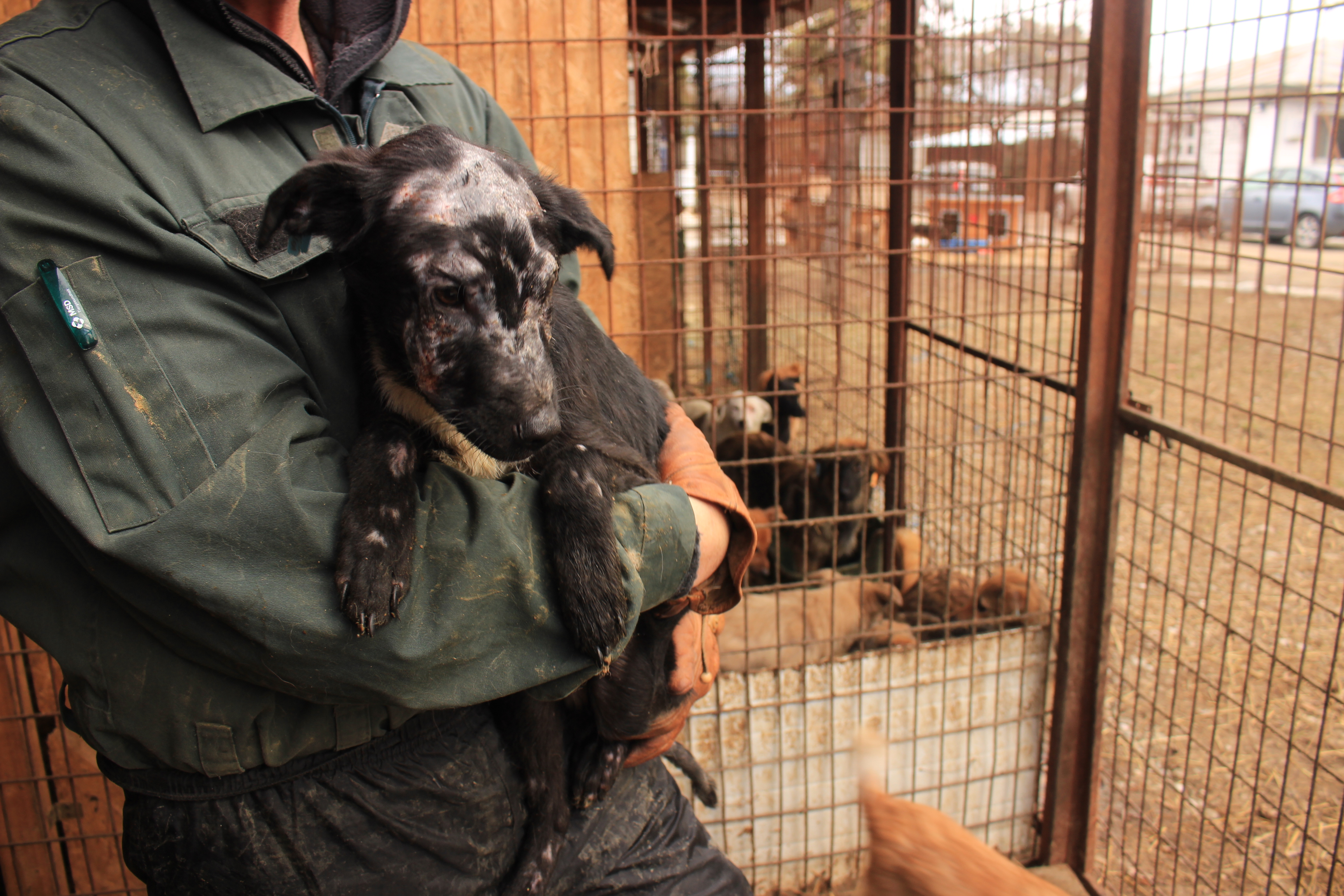 An Tristesse kaum zu überbieten. Kalt. Eisschicht mit Matsche. Kahle Bäume. Schreie und Geheule aus dem Vetkennel. Aufgeregtes Gekläffe bei den Welpenkennels, die auch noch nicht überdacht sind. Die kleinen Kerls sind klatschnass und müssen nun durch die Nacht. 10 Minuten später sitze ich im warmen Auto Richtung Pension und denke daran, dass der Opa aus Kennel 5 bestimmt das Trockenfutter, was man ihm in die Hütte gelegt hat, nicht gut kauen kann mit seinen Zähnen und dass er furchtbar frieren wird, weil er gar nichts auf den Rippen hat. Meine Finger bohren sich ins Lenkrad. Dauerschleife in meinem Kopf.