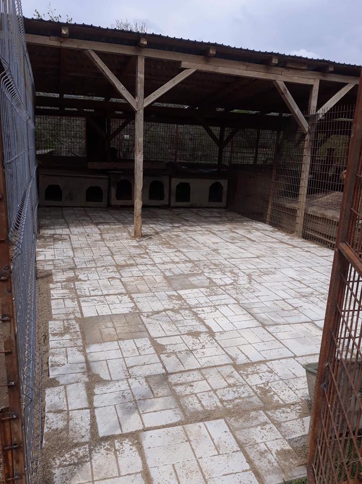 Es wurden weitere Kennel mit Platten ausgelegt und auch zwei größere Kennel aufgeteilt. In den nun so entstandenen neuen Kennels können dann neue Hunde besser zusammengeführt werden. Es ist immer schwierig einzelne Hunde in bestehende Rudelstrukturen zu bringen.