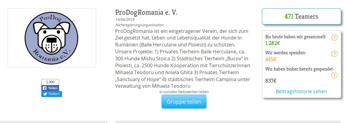 471 Teamer haben wir bereits. 471€ im Monat für unsere Hunde. Wir möchten 500 Teamer erreichen.