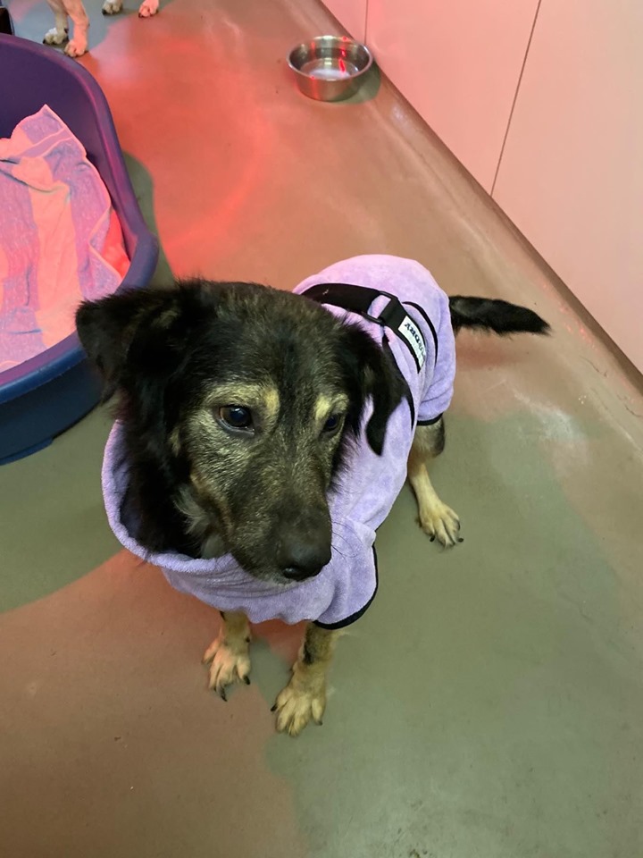 Tausend Dank nach Lingen ❤️ von Nadine | Okt. 29, 2019 | Home Nach 2 Jahren im düsteren Vet.Kennel durfte LARES im Senioren-SOS-Express ins Tierheim Lingen reisen. Hier zu sehen im Bademäntelchen beim Herren-Wellness ?.
