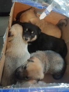 Ein neuer Tag, und schon wieder wurden 7 Welpen in Baile abgegeben. wie immer: Stilecht im Pappkarton. 🙁