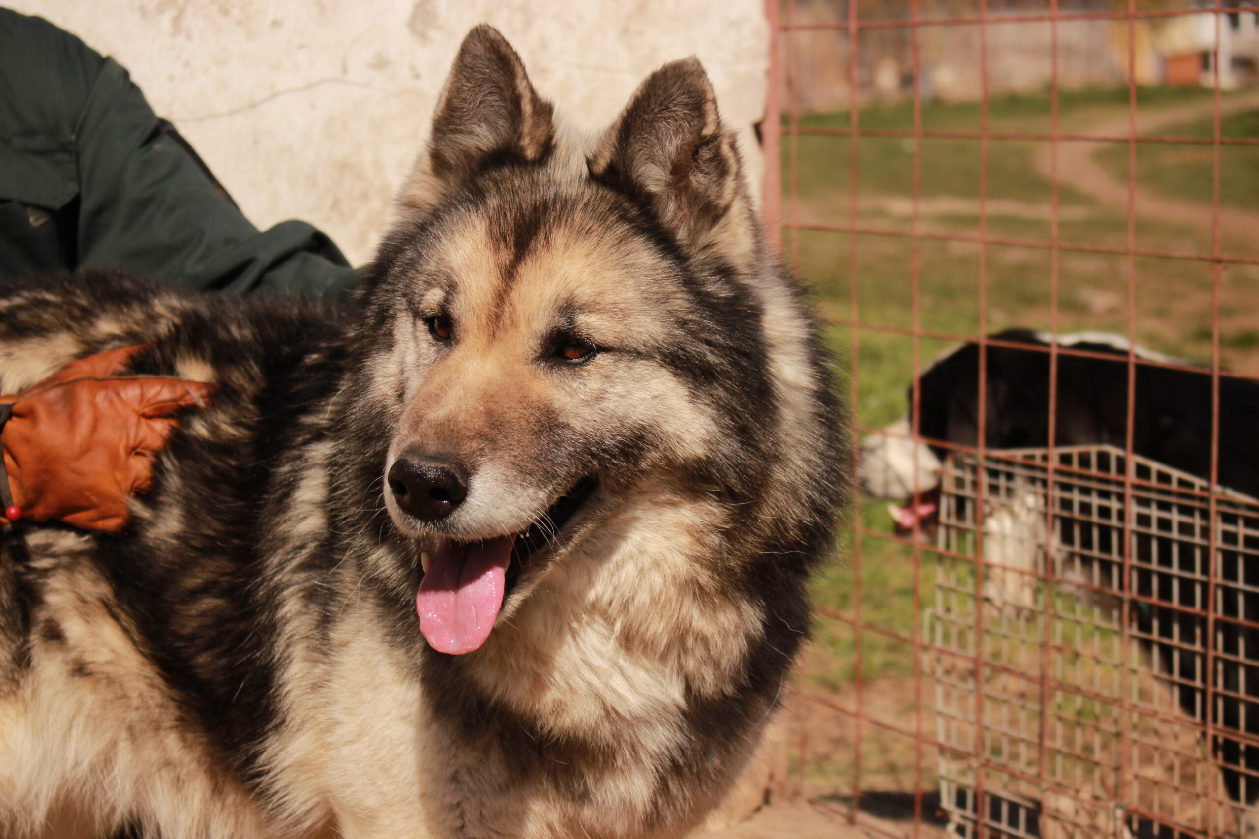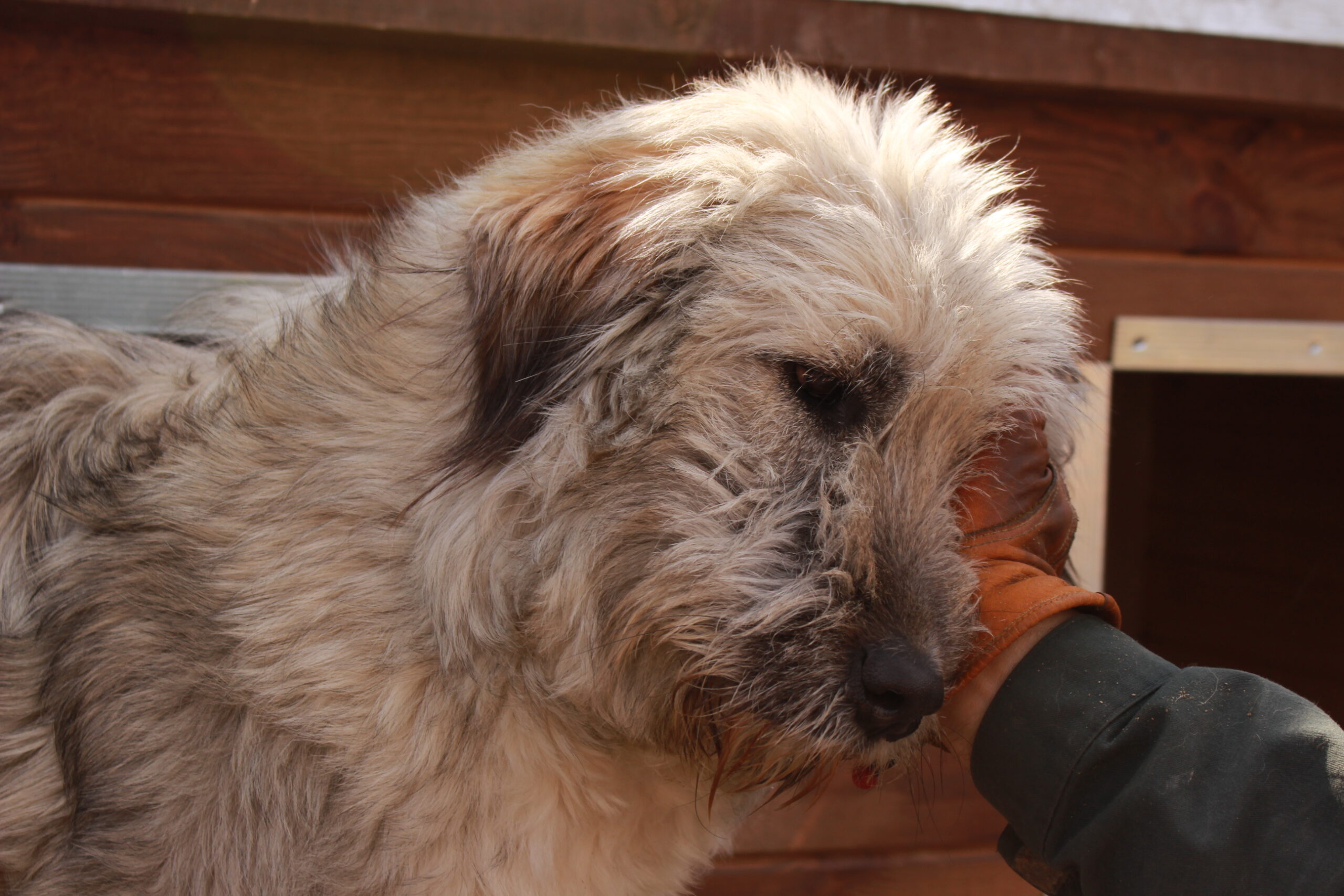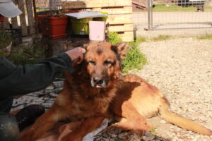 Die Hunde haben heute total die Sonne genossen. Es ist einer der ersten wärmeren Tage hier und die Sonne tut allen gut. Der Winter war anstrengend, viel Sturm, viel Regen. Alle hier kostet das große Kräfte. Viele Hunde lagen heute ganz ausstreckt der Länge nach, im Hintergrund eine Wand, die sich ein ganz wenig schon aufgewärmt hatte. Am ersten Tag ist es immer noch recht laut, wenn wir durchs Shelter gehen, weil uns die Hunde noch nicht so ganz auf dem Schirm haben und natürlich merken, dass hier Leute rumlaufen, die nicht täglich da sind. Das hört aber meist schon an Tag 2 auf und man erkennt uns. Es ist immer wieder schön zu merken, wie alle immer die Zeit eigentlich bekommen, die sie brauchen. In den ersten Stunden laufen wir auch immer erst mal planlos durchs Shelter, das ist jedes Mal so. So viel zu sehen, so viel Freude. Aber auch die Hunde brauchen einfach ein bisschen Zeit, bis sie sich auf unseren Besuch einstellen. Warm werden – das müssen wir alle. Die ersten langen Sonnenstrahlen haben uns heute dabei geholfen. Und so zogen wir von Kennel zu Kennel, zwischendurch etwas trinken und die Taschen auffüllen mit kleinen Kostbarkeiten für die Hunde. Wir machen natürlich keine Futterparty mit uns unbekannten Hunden, aber gerade für die Hunde, die noch ein wenig überzeugt werden müssen, ist ein kleiner leckere Snack oftmals eine gute Warm Up Geschichte. Und so haben wir heute schon richtig viele tolle Hunde wieder getroffen oder zum ersten Mal kennengelernt. Unter anderem: