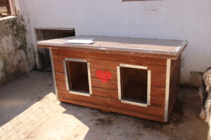 Im Außenbereich von einigen Kennels im A-Haus stehen die neuen Hütten, so dass dort ein wenig mehr Struktur entsteht und weitere Liegeplätze/ Rückzugsorte auch draußen geschaffen werden. Wir werden die Tage noch einige mehr verteilen.