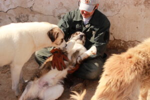 Mishu haben wir heute morgen nicht angetroffen, er ist bereits ganz früh am morgen Richtung Bucov aufgebrochen, um Hütten und Futter abzuholen. Dafür haben wir natürlich mit Alex, seinem Sohn – er ist vor allem für die Abläufe konkret bei den Hunden zuständig, die erste Runde durchs Tierheim gedreht, um uns die aktuelle Lage anzuschauen. Wie ist der Eindruck von den Hunden? Wie sind die Zwinger belegt? Was ist infrastrukturell los? Gibt es Probleme? Dies ist sehr wichtig, da wir natürlich immer gemeinsam schauen, was wir wie besser machen können und wir checken natürlich auch, was an neuen Dingen umgesetzt wurde, die wir besprochen haben. Dies ist immer ein Austausch auf Augenhöhe und dient einfach dazu, dass wir gemeinsam das Beste für die Hunde herausholen. Wir kennen alle Mitarbeiter, die meisten arbeiten seit Jahren für uns hier im Tierheim, wie zum Beispiel auch die Tierärztin Andrea.