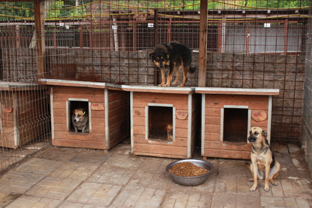 Alle Kennels sind mittlerweile gut ausgestattet. Sie sind befestigt, haben gute Hütten, Wassertröge und feste Futterschalen. Auch hier wird einmal am Tag sauber gemacht und es ist immer jemand vor Ort, der nach den Hunden schaut.