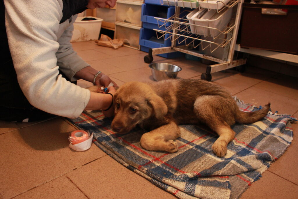 Leider haben wir aktuell in der Quarantäne immer wieder Welpen mit Lungenproblemen. Heute war ein kleiner Tropf an der Infusion, wir hoffen, er schafft es….