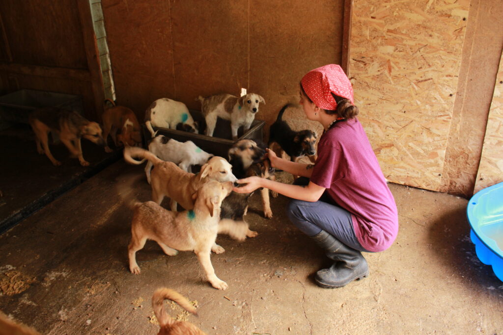 Mishu und sein Sohn Andrei waren erst spät in der Nacht vom Transport nach Hause gekommen, beide schliefen noch. Sein zweiter Sohn Alex und seine Freundin Ana begrüßten mich sehr herzlich und wir machten nach einem kleinen Frühstück unseren Shelter Rundgang. Alex zeigte mir die beiden neuen B-Kennels und die kleinen Umbauten, die seit April passiert sind. Er erklärte mir, warum er Hunde umgesetzt hat und wie er neue Kennelbesetzungen plant. Bekannte Gesichter sah ich sehr schnell, war mein Besuch im April ja nicht lange her… Einige Hunde durften natürlich reisen, nicht so viele aber, wie ich erhofft hatte…In dem Kennel von unserem großen Björn, der wenige Wochen zuvor reisen durfte, leben nun 6 Junghunde zusammen, die in den P-Kennels für die unendlichen Welpen Platz machen mussten…Einen leeren Kennel – das gibt es hier nicht…