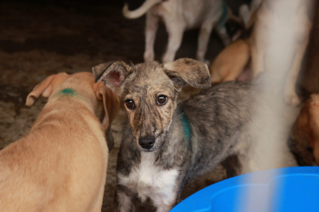 Ein paar Meter weiter traf ich auf die Welpen, die ich im April erfasst hatte – alle nun Teenager geworden…. Es ist so traurig zu sehen, dass sie weitere 3 Monate im selben Kennel verbracht haben und nichts von der Welt gesehen haben. Wenn ich überlege, was meine Hunde Zuhause in dieser Zeit alles erlebt haben… Es ist so so wichtig, dass unsere Hundekinder immer zeitnah reisen können, denn die so wichtige Zeit des Großwerdens darf nicht so ablaufen, wie es nun mal in den Sheltern an der Tagesordnung ist. Niemand hat Zeit, um sich stundenlang zu den Hunden zu setzen, niemand hat Zeit, mit den Welpen etwas Neues zu erleben… Gerade die Welpen, die schon unsicher sind, müssen eigentlich mit aller höchster Priorität reisen…denn für sie ist alles verloren, wenn sie mit 8 Monaten immer noch hier sitzen. Ich habe daher bereits heute alle erfassten Welpen aus Kennel H4 und H3 an das Galerieteam gesendet, damit sie schnell Namen erhalten und in der Galerie sichtbar werden.