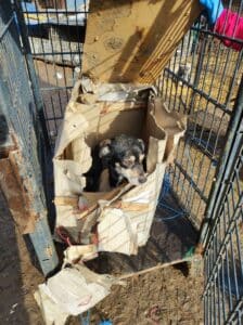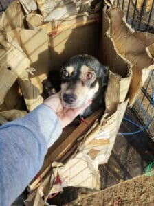 Diese kleine Mama mit ihren 5 Welpen wurde gestern in einem verschnürten Pappkarton nach Bucov gebracht. Die Schnüre waren kaum aufzubekommen und sie müssen schon einige Zeit dort drin gesessen haben. Die Mama haben wir EDDA getauft, sie ist nun in Anielas Obhut. Ihre Welpen sind noch recht klein, wir müssen schauen, wie sie die Impfung vertragen.