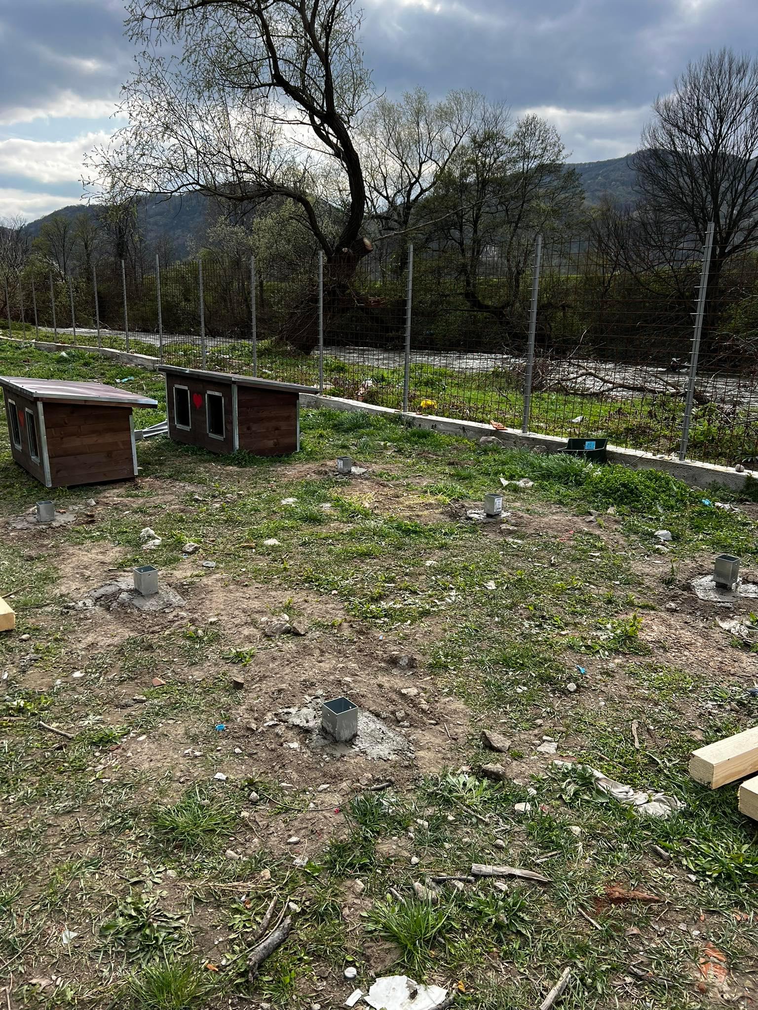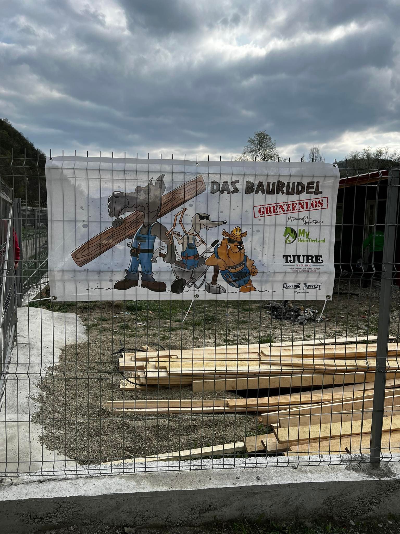 Insgesamt wird es drei „Carports“ geben, unter denen wir aber keine Autos, sondern Hundehütten abstellen werden. Diese sind gut im Gelände verteilt, damit erstens Struktur entsteht und zweitens die Hunde sich aus dem Weg gehen können. Alle haben eine solide Überdachung, und schützen so vor Wind und Sturm.