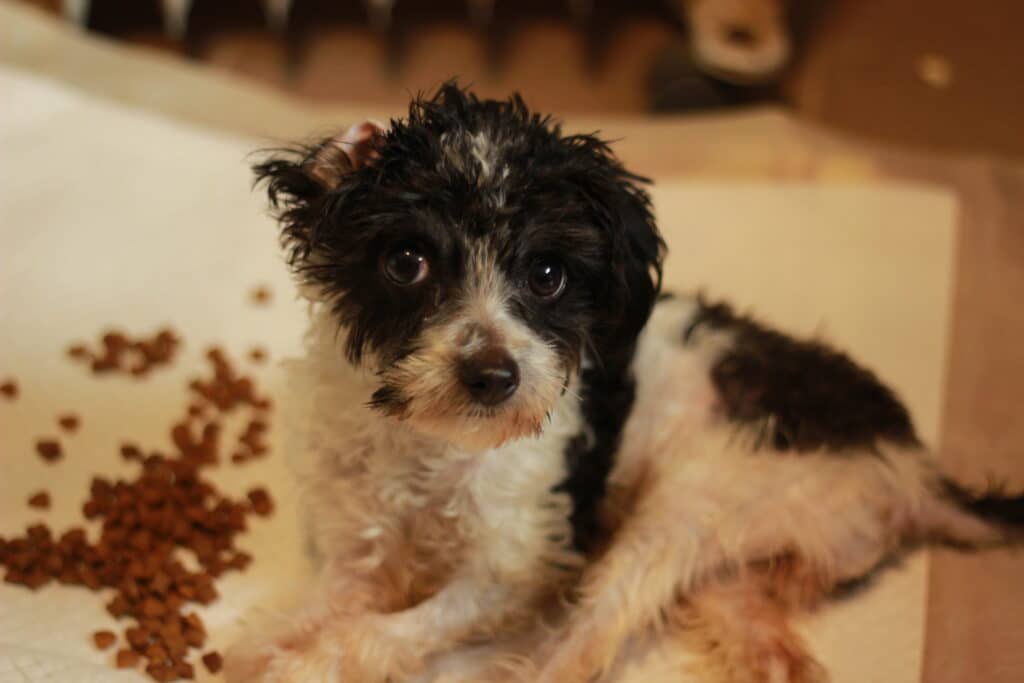 Dieser kleine Rüde kam vor 3 Tagen in Shelter und ist noch ziemlich beeindruckt. Aber er frisst mittlerweile schon mal aus der Hand.