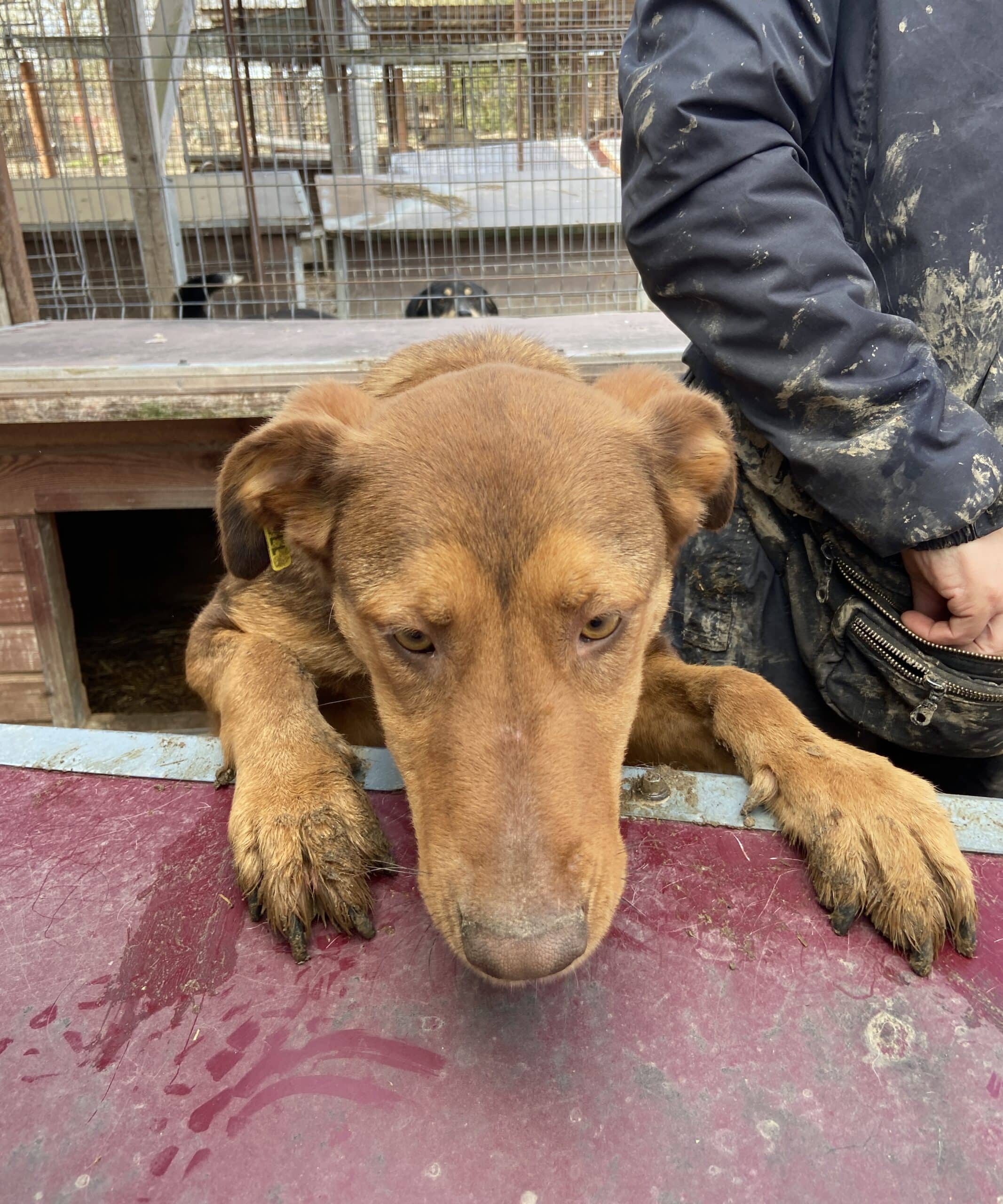 Die super nette ABBA lebt aktuell in einem Kennel mit ca. 30 (!!!) Junghunden. Sie liegt daher meist auf dem Dach einer Hütte.