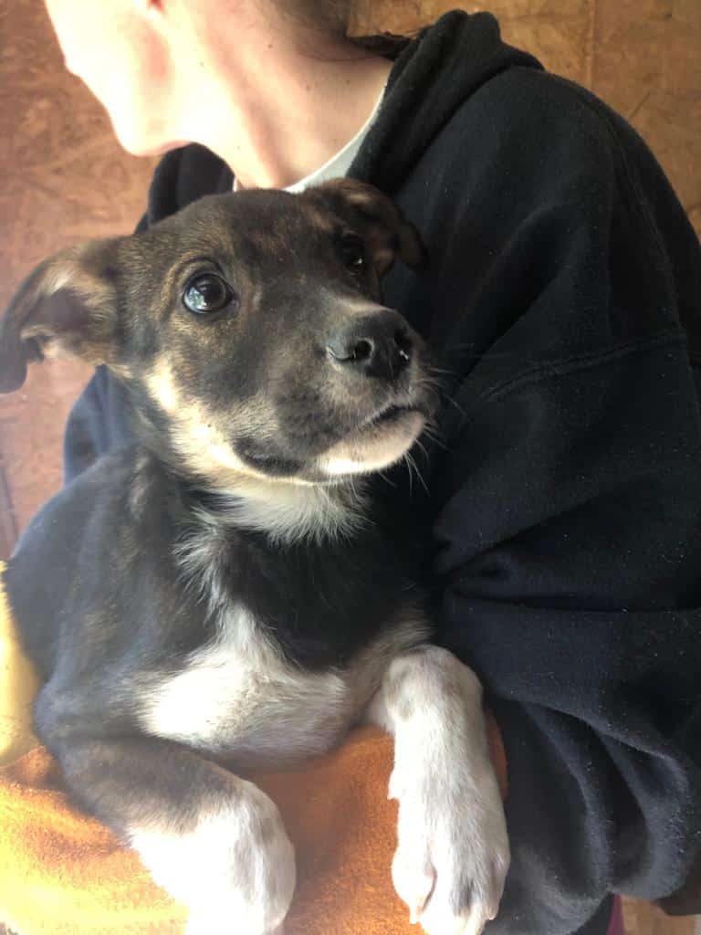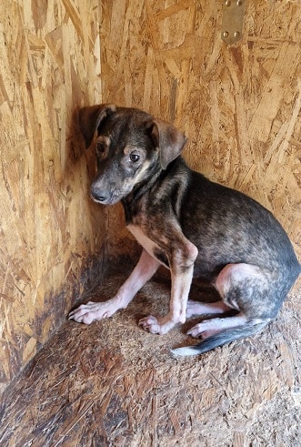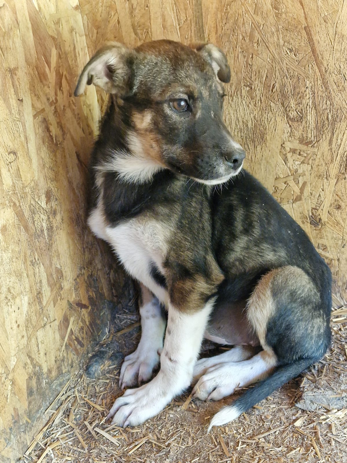 Diese schüchterne, junge Hündin lief anfangs vor uns weg, wurde jedoch ganz ruhig als wir sie auf den Arm genommen haben. Mit genügend Zeit und Zuwendung wird sie ihre Schüchternheit sicher immer mehr ablegen können.