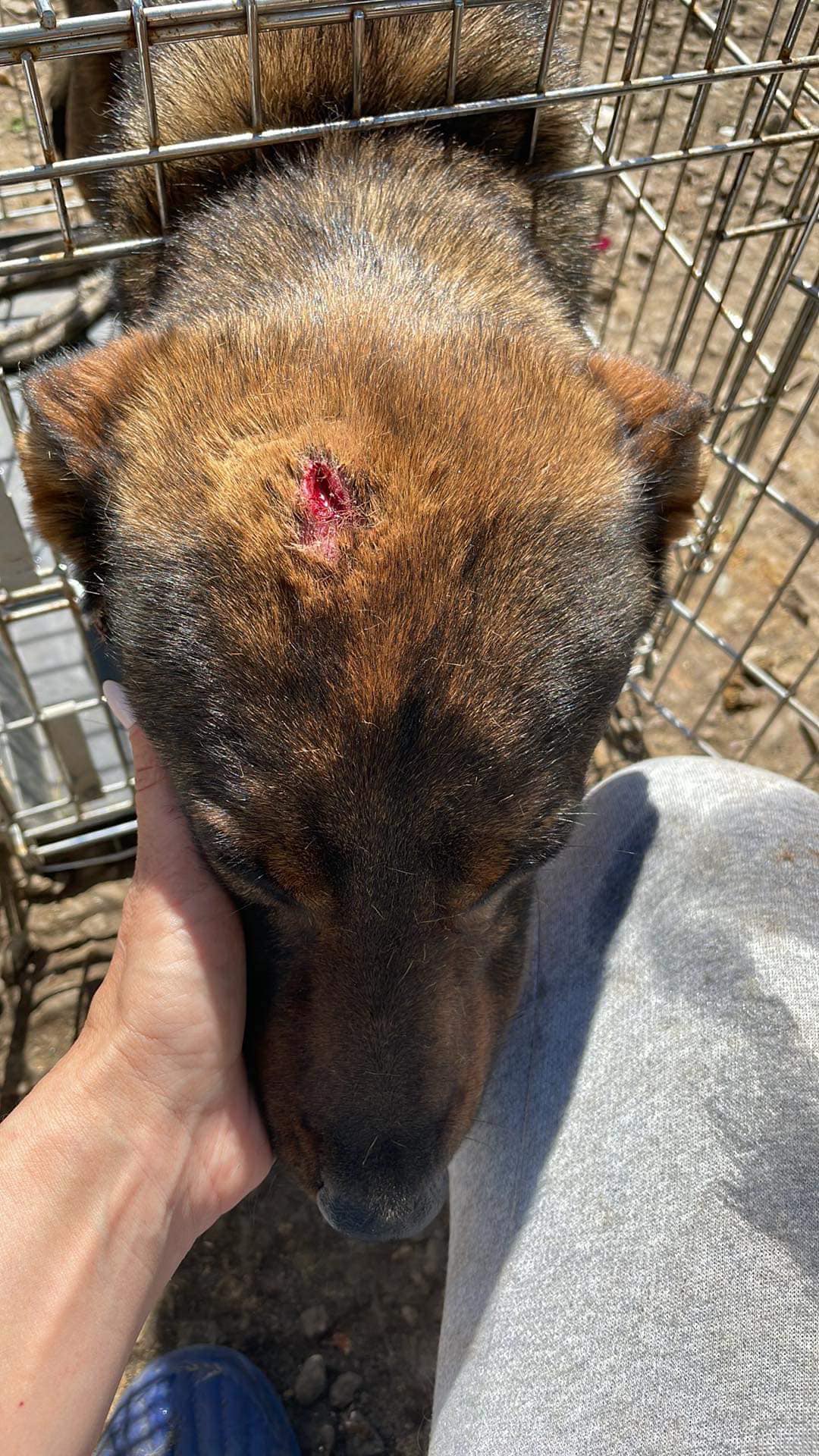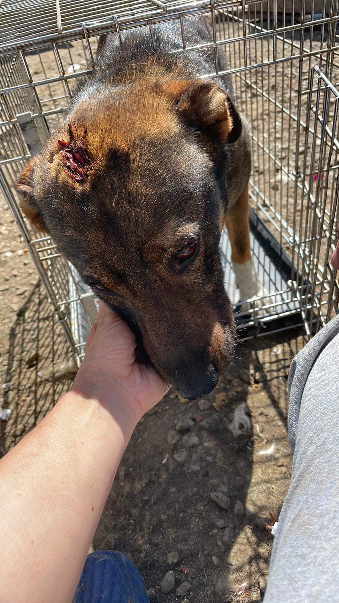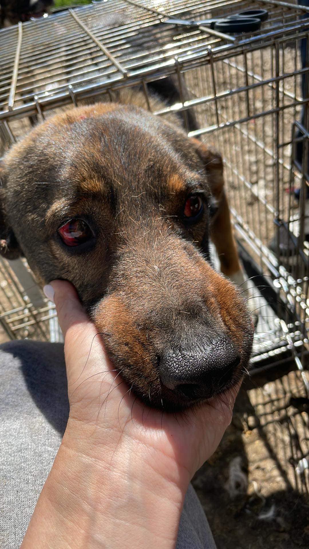 Seine Augen sind feuerrot, der Kopf hat eine große Wunde, er war fast verdurstet. Es ist klar, dass ACADIUS geschlagen / getreten worden ist, aber dennoch freute er sich, als er die Menschen im Tierheim Herculane kennenlernte.