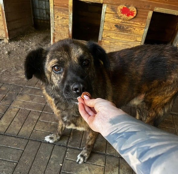ACHILLES ist ein freundlicher, wunderschön gestromter Rüde, der sehr aufmerksam und am Menschen interessiert ist. In ruhigen Situationen ab vom Trubel lässt er sich auch vorsichtig streicheln. Wir suchen für ihn daher ein eher ruhiges Zuhause, wo er in seiner Geschwindigkeit ankommen darf. Mit den anderen Hunden in seinem Kennel ist ACHILLES gut verträglich. Ein netter Ersthund könnte ihm sehr bei der Eingewöhnung helfen. Wir hoffen für den wunderschönen ACHILLES auf ein Zuhause bei Menschen mit Hundeerfahrung, die wissen, dass er anfangs nicht zu sehr bedrängt werden darf und die ihm dabei helfen, den letzten Schritt zum Vertrauen zu überwinden.