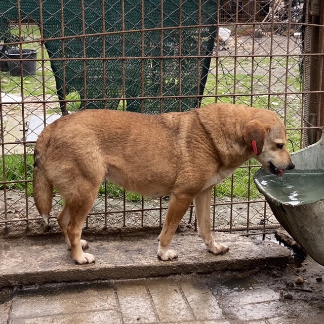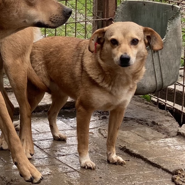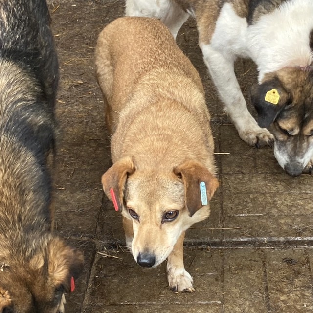 ADELE ist eine wundervolle süße kleinere Hündin. In der kurzen Zeit unseres Besuches war es uns leider nicht möglich, sie zu streicheln. Sie kennt anscheinend den positiven Kontakt zum Menschen nicht. Dennoch war sie sehr interessiert und nahm auch in unserer Anwesenheit Leckerlie vom Boden. ADELE lebt in einem gemischten Rudel, in dem sie die Kleinste ist und scheint verträglich zu sein. Probleme beim Laufen konnten wir nicht beobachten. Wir wünschen uns für ADELE eine liebevolle Familie, die ihr Zeit und Geduld schenken. Ein souveräner Ersthund könnte ihr die Eingewöhnung erleichtern.