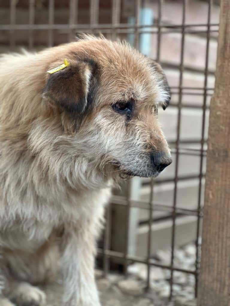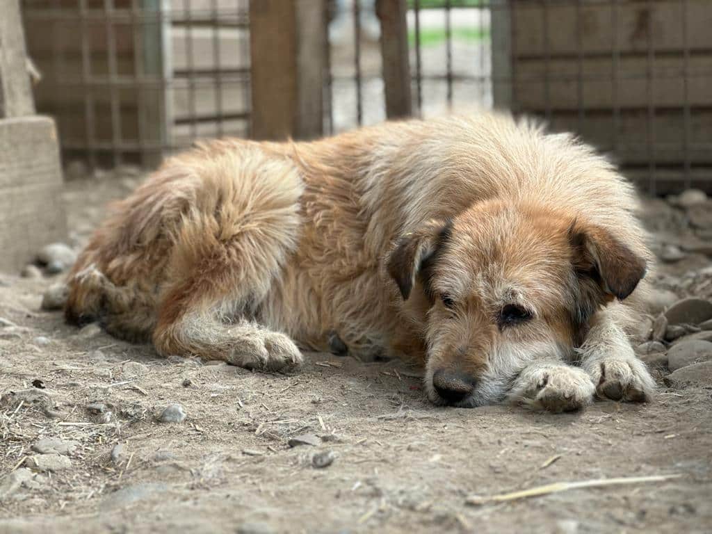 Dieser kauzige Opi wurde erst am Tag vor unserem Besuch in diesen Kennel mit mehreren weiteren Hunden eingesetzt. Das Umfeld war noch neu und die Gruppe musste sich neu strukturieren. Er lag unter dem großen Holzunterstand und bellte uns aus Unsicherheit an. Von dort aus beobachtete er uns interessiert, um zu schauen, was wir hier machen.