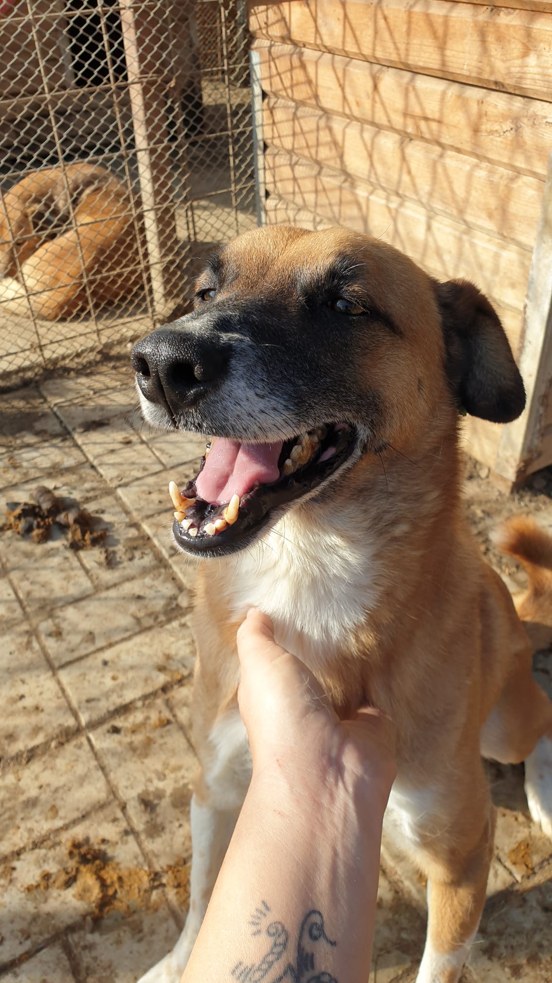 ADONIS hat uns sehr berührt. Fast 4 Jahre sitzt der sehr freundliche, anfangs schüchterne Rüde schon in Bucov. Er versuchte alles, um irgendwie Kontakt aufzunehmen. Wenn man ihn einmal hat und streichelt, dann spürt man förmlich seine Erleichterung, dass man es gut mit ihm meint. Er ließ sich dann toll streicheln, fand das super und blühte richtig auf. Ihm steht nun der 5. Winter in Bucov bevor. Wirklich traurig.