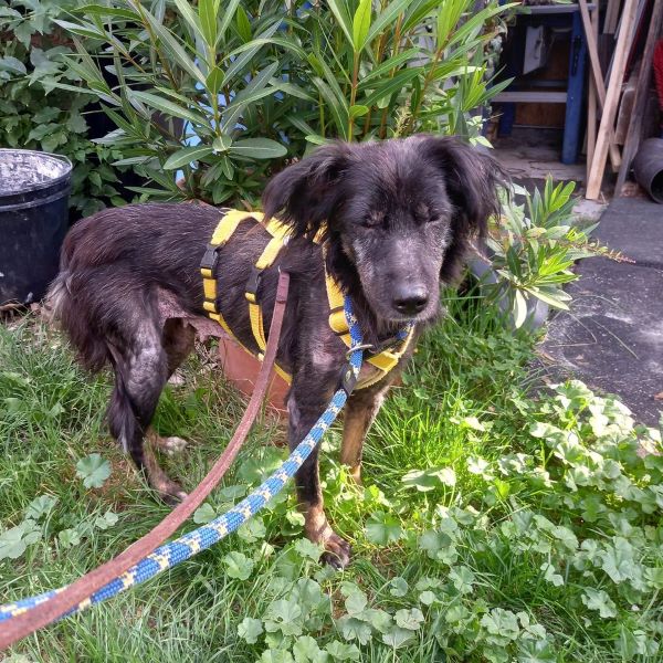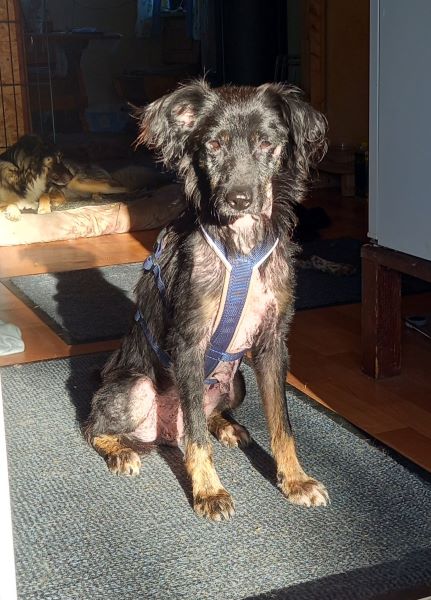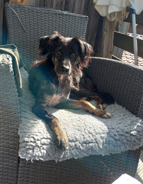 Afife kam in einem schlimmen körperlichen Zustand, von Milben schwer befallen, wenig Fell und klapperdürr bei uns an. Psychisch völlig fertig und die ersten Tage kaum anfassbar. Als sie aber realisiert hat, dass sie nicht mehr das Schlimmste befürchten muss, wurde sie immer zugänglicher. Mittlerweile ist sie von ihr gut vertrauten Menschen anfassbar und anhänglich. Mit den anderen Hunden ist sie sehr verträglich. Die Seniorenjungs mag sie besonders gern und sucht viel deren Nähe. Kleine Gassirunden mag sie inzwischen auch. Sie liebt es in der Sonne zu liegen und zu dösen.