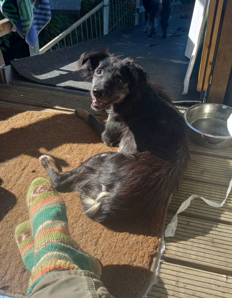 Vor fremden Menschen hat sie Angst und kann auch schnell wieder in Verteidigungsbereitschaft fallen. Daran üben wir langsam.