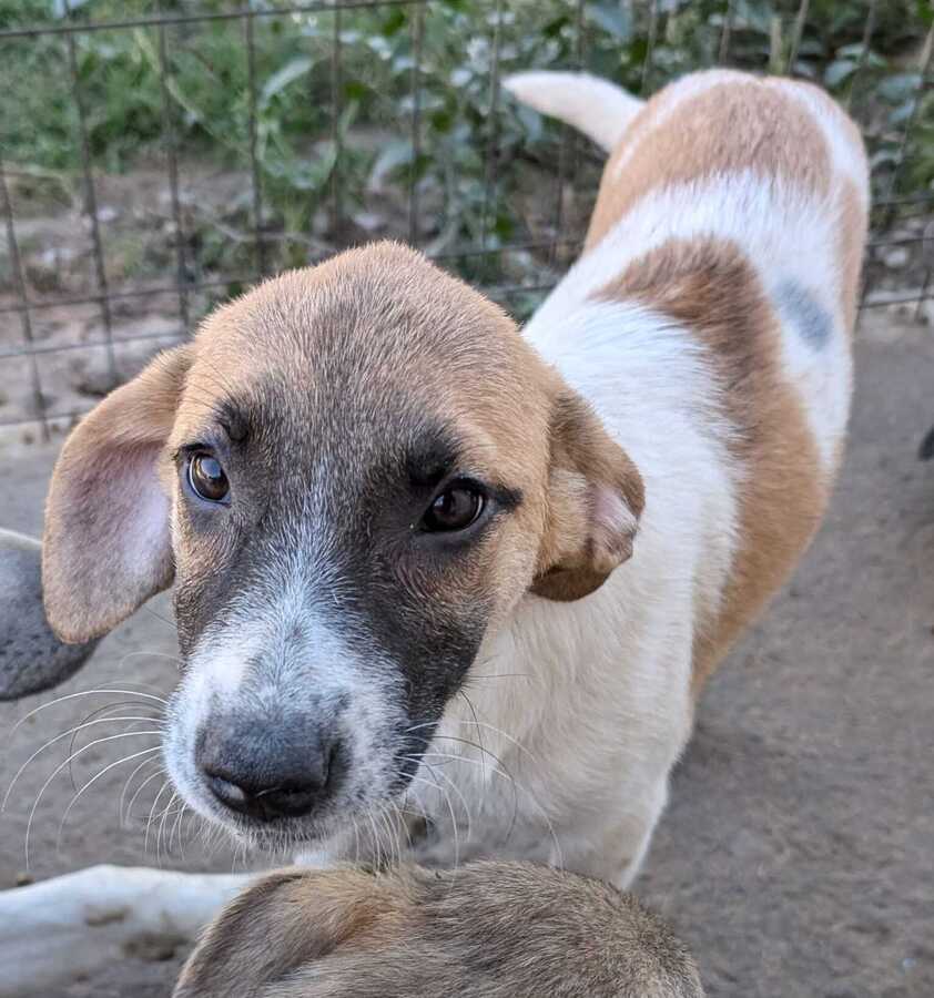 Seit ihrem Welpenalter lebt AFRA gemeinsam mit ihren Geschwistern im Shelter. Ihr Alltag ist geprägt von Lärm, Hektik und Kälte, menschliche Nähe kennt sie kaum. Doch trotz dieser Umstände hat sie sich eine vorsichtige Neugier bewahrt. Im Schutz ihrer Hütte wagte sie bei unserem Besuch den ersten Schritt. Sie wedelte sanft mit der Rute und nahm Leckerlis aus der Hand. Dabei durften wir sie sogar behutsam streicheln. Außerhalb ihrer Hütte zeigt sich AFRA noch deutlich unsicherer. Für diese sensible, süße Hündin suchen wir ein ruhiges, liebevolles Zuhause bei geduldigen Menschen, die ihr die Zeit geben, Vertrauen aufzubauen und anzukommen.