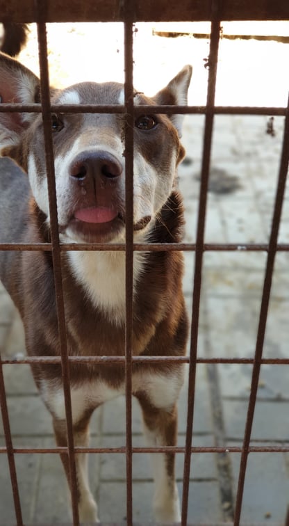 Von den Erfasserinnen liebevoll ,,Flummi“ genannt, hat AHANU sich so gefreut, dass Menschen in seinen Kennel gekommen sind, dass er aufgeregt hin und her sprang. Sein Kennel ist winzig und er teilt sich diesen mit einer sehr netten Mioritic-Hündin. Sie haben kaum Platz, sich zu bewegen, und AHANU wollte gerne alle Aufmerksamkeit erstmal für sich.