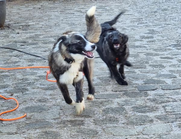 Mit Hunden ist Aiana hier auf der Pflegestelle gut verträglich. Sie bindet sich sehr eng an ihre Bezugspersonen.