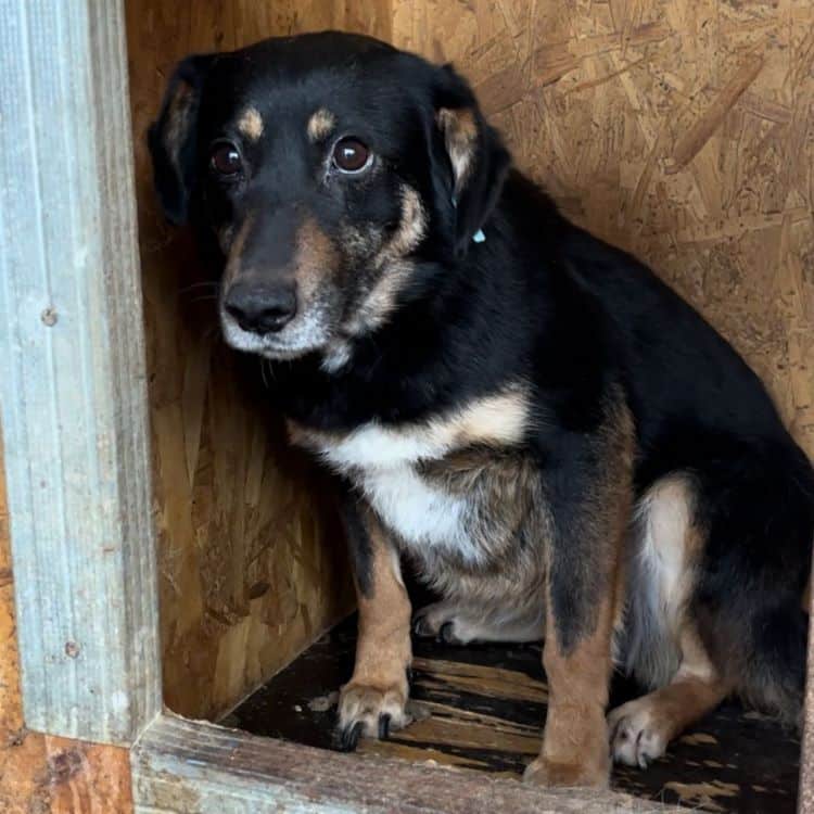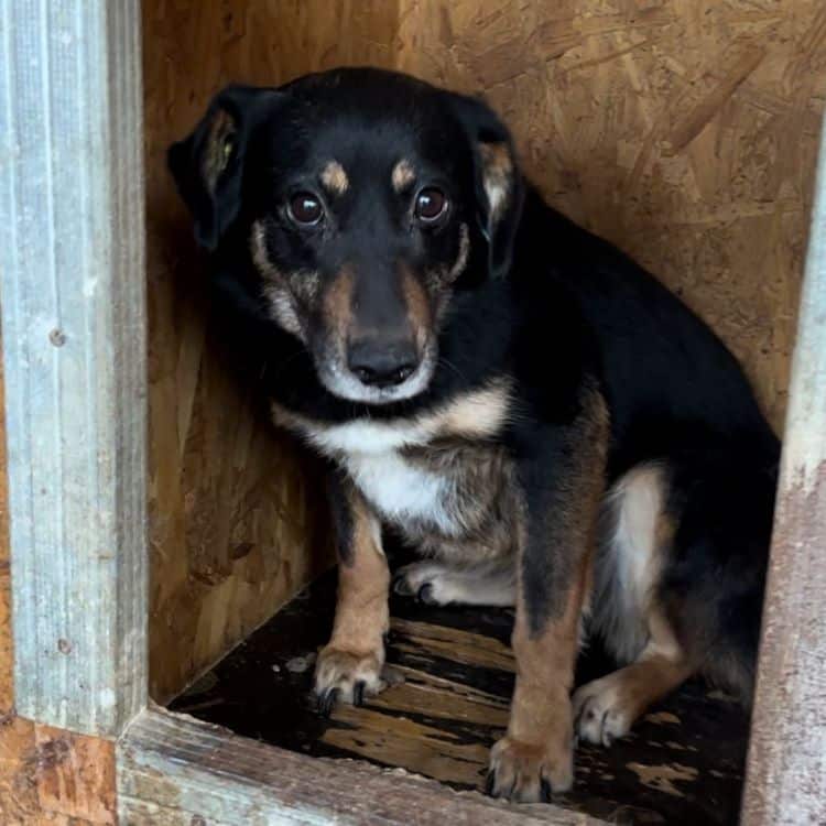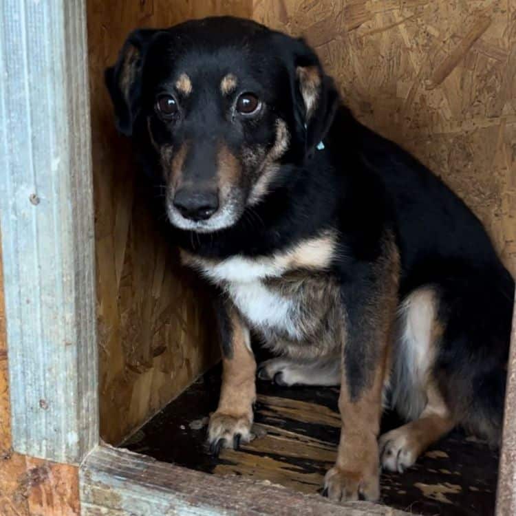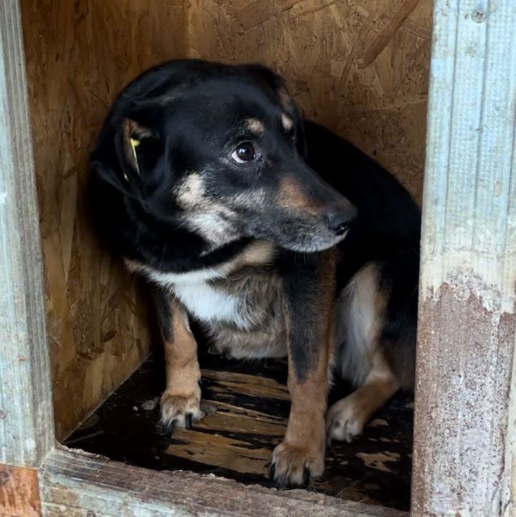 Die niedliche kleine AIKE wartet bereits seit knapp 2 Jahren fast ungesehen auf ihr Glück… Leider wollte sie bei unserem Besuch nichts von uns wissen und freiwillig auch nicht ihre sichere Hütte verlassen… Unsere Mission war es, endlich ihr Geschlecht herauszufinden und leider gab es die Zeit nicht her, dass wir uns ihr behutsam zuwenden und sie streicheln konnten… Wir sind uns jedoch sicher, dass sie defensiv bleiben würde. Wer AIKE eine Chance geben möchte, sollte viel Geduld und Erfahrung mitbringen, und ihr den Raum geben den sie braucht, um in ihrem Tempo anzukommen und Vertrauen lernen zu können. In ihrem gemischten Rudel, welches leider ebenfalls aus sehr unsicheren Hunden besteht, zeigte die zarte Maus sich durchgehend verträglich und würde in ihrem neuen Zuhause sehr von einem souveränen Ersthund profitieren, an dem sie sich orientieren kann.