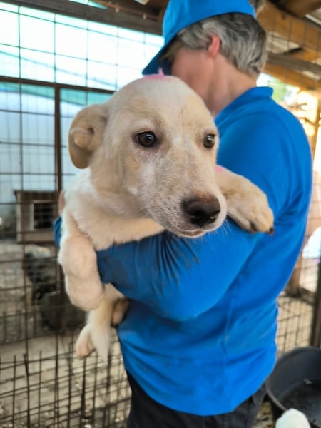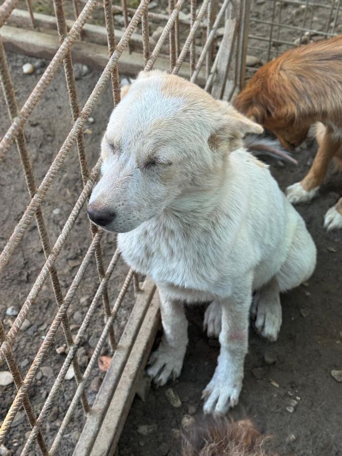 AIKO ist noch ein Jundhund und schon zum seelischen und körperlichen Notfall geworden. Er hat massive Hautprobleme entwickelt. Seine Haut ist stark entzündet und gerötet. Man sieht deutlich, wie sehr ihn der Stress und die Enge im Shelter belasten. Er sitzt still am Gitter seines Kennels und schaut mit traurigen Blick nach draußen. Er will einfach nur weg.